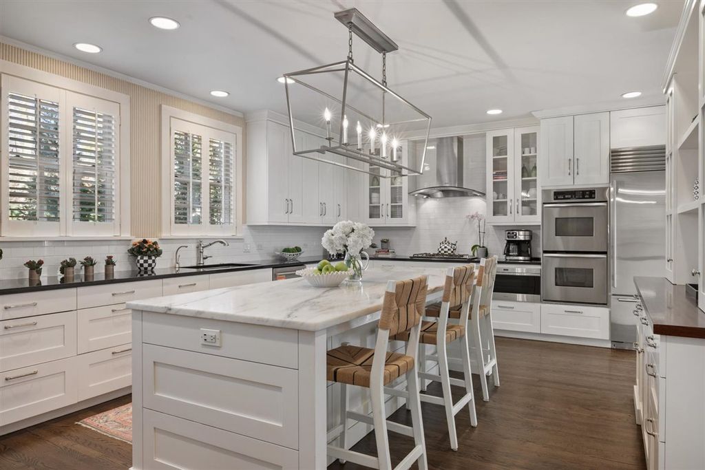 Centrally located in a premiere "get to everything" A+ location, this quintessential North Shore coastal shingle home delivers the best of both worlds. Thoughtfully remodeled and reimagined by notable North Shore architect Paul Konstant that beautifully blends classic character with a refreshed, modern floor plan that marries timeless architecture with designer-perfected living. Step inside to a gracious foyer that opens to the formal living and dining rooms. Sun-drenched living room shines with restored original built-in bookshelves & accented by WBFP with a fab Chicago common brick surround creating a warm welcome. Living room flows effortlessly into stoic Polo lounge/office painted in a cozy Farrow & Ball liquorice, custom built-ins, huge bay window, custom Ralph Lauren window treatments & classic window seat. Elegant dining room, bathed in natural light, connects seamlessly to the butler's pantry opening to the Chef's kitchen - the hub of this extensive first floor. Crisp white cabinetry, s/s appliances, an oversized breakfast island outfitted in gorgeous Villa Bianco marble with seating for 4. Directly off the kitchen, mudroom with back door entrance and 2nd powder room. Bright breakfast room bathed in light w/ thoughtfully designed built-in command center connects directly to the new phenomenal Great room addition with soaring vaulted ceilings, intricate trim work, a window bench flanked by custom built-ins, a soapstone surround FP, and French doors that open to the covered back porch with FP that overlooks the lush, beautifully landscaped 1/2 acre grounds. Second floor with 4 bedrooms: two share a Jack & Jill bath, one ensuite, and bedrooms two and three share a cheerful sun-drenched tandem room with custom built-in desks - a perfect homework space or kids' hangout. Large primary suite is a true retreat with a stunning newly redone spa bath featuring Ann Sacks tile, thick white marble counters, soaking tub, dual vanity, and a marble-clad walk-in shower. Large walk-in closet and best yet, a private second-floor balcony. 3rd floor with 2 additional bedrooms that share a hall bath - ideal for guests. Incredible new lower level dug out with radiant heat, soaring ceilings with natural light in the large rec room. Pretty full bath with caesarstone grey c-tops, subway tile, and white cabinetry. HUGE storage space on the unfinished side with craft area and ample closets. Just steps from town, train, and all schools including Faith Hope, NSCD, New Trier & Loyola, 213 Linden is the kind of home that feels magical in every season - from summer nights in the backyard to cozy holidays by the fire. A timeless Winnetka classic that is turn key charming all American beauty!