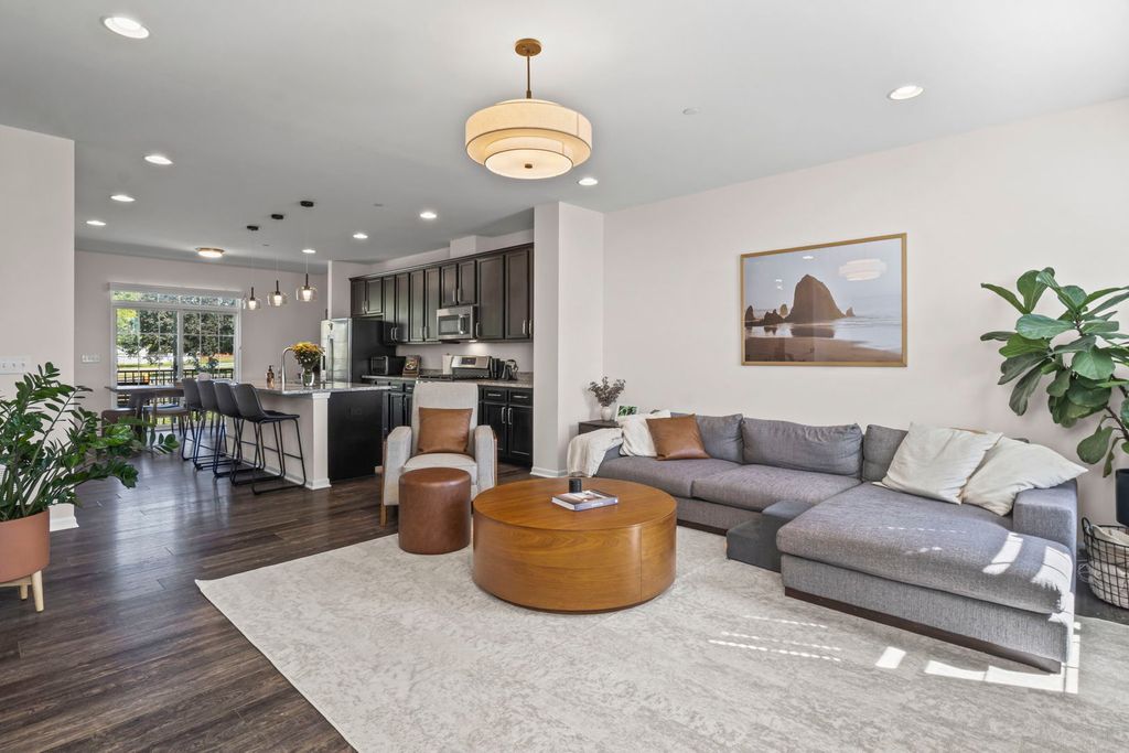 Set in the sought-after Woodview community, this stylish townhome offers over 2,200 square feet of modern, low-maintenance living in an unbeatable Woodridge location close to Naperville, Downers Grove, and Lisle. Inside, an open-concept main level creates an ideal flow for everyday life and entertaining, with a generous living and dining space that connects to a designer kitchen featuring rich espresso cabinets, quartz countertops, a large island, and stainless steel appliances. Upstairs, you will find two spacious bedrooms, including a serene primary suite with two walk-in closets and a private bath with double sinks and a walk-in shower. A large loft on this level adds valuable flexible space and works beautifully as a home office, media lounge, homework area, or cozy reading retreat. On the first floor, a generous recreation room extends your living space even further. This bright, finished area is perfect for a dedicated home office, fitness room, playroom, or second family room, so everyone can spread out and have their own zone. The attached, expanded 2-car garage provides excellent storage and everyday convenience, and it is already wired for an electric charger, a smart upgrade for current or future EV owners. A 2024 water softener is another thoughtful update that keeps the home feeling fresh and well cared for. Everyday living is made easier with main-level laundry and extra storage, high ceilings, recessed lighting, and energy-efficient construction that includes Energy Star certification and water-saving fixtures to help keep utilities in check. Exterior maintenance, lawn care, and snow removal are all handled by the association, so weekends can be spent enjoying nearby shopping, restaurants, parks, and convenient access to commuter routes and public transportation. Served by highly rated District 68 and District 99 schools, this move-in-ready 2-bedroom townhome with a spacious loft and versatile first-floor recreation room is a rare find that combines size, style, and a truly convenient suburban location.