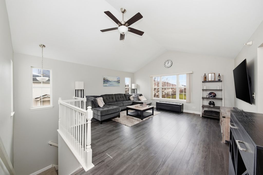 Welcome home to this updated and move-in-ready second-level ranch townhome in the desirable Lakewood Valley subdivision, a vibrant pool and clubhouse community. As you enter the main living space, you're met with sleek gray laminate wood floors that extend seamlessly throughout the entire home. The expansive living room is highlighted by tall vaulted ceilings and an abundance of natural light, creating an open and welcoming atmosphere. The kitchen offers painted gray cabinetry and a comfortable eating area perfect for casual meals. Down the hall, you'll find two well-appointed bedrooms and two full bathrooms, including a primary suite complete with a walk-in closet and private ensuite bath. The second bedroom is conveniently served by its own full bathroom, providing flexibility for guests or family. A dedicated laundry room is located near both bedrooms, making everyday tasks easy and efficient. The attached one-car garage adds convenience and storage. Ideally situated between Naperville and Oswego, this home offers quick access to endless shopping, dining, and recreation options. Located within highly acclaimed District 308 schools, this is an exceptional opportunity to enjoy comfort, convenience, and community living.