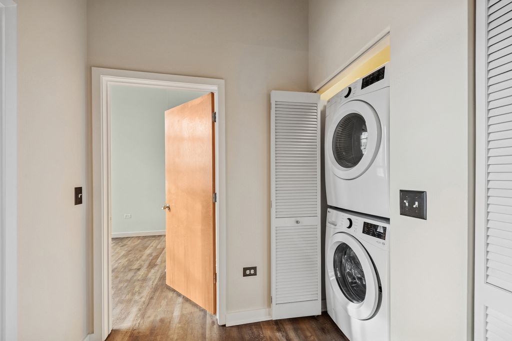 Settle into a space rooted in Chicago's history. This corner loft sits in the heart of Avondale, a neighborhood shaped by makers, creatives, and the city's Polish and Latinx heritage. Set in the former Shoemaker factory, this 3-bedroom, 2-bath corner unit packs in over 1,500 sq. ft. of bright, open living with 12-foot concrete ceilings, exposed ducts, and industrial-sized windows that catch light throughout the day (unless we have a classic Chicago winter). Two bedrooms are fully enclosed for restful nights or focused Zoom sessions. The third makes a great flex space: office, guest room, a place to stash your vinyl collection, or endless projects. The whole unit was refreshed in 2025 with new paint and updates throughout, and each bedroom has its own remote-controlled blackout shades so you can nap, sleep in, or binge-watch in peace. Bonus quirk: your deeded garage parking sits on heated ground. It won't melt the snow off your car, but you'll never have to dig the tires out just to get to lunch. (Remote start from window) The building offers perks like elevator access, a gym, secure mail, and a rooftop deck famed for 4th of July and Mexican Independence Day fireworks. Front door security is on site daily, with 24-hour weekend and holiday coverage.Find your community at Avondale's favorites: Sleeping Village for craft beer and live music, Loaf Lounge (hola, Bear chocolate cake), Believe Cafe for morning fuel, or Factotum Coffee for remote work. The Blue Line at Belmont is a 12-minute walk, with easy bus and highway access to the rest of the city. There's room here to live the way you want. It's a space that's lived a story, and is ready for the next one.