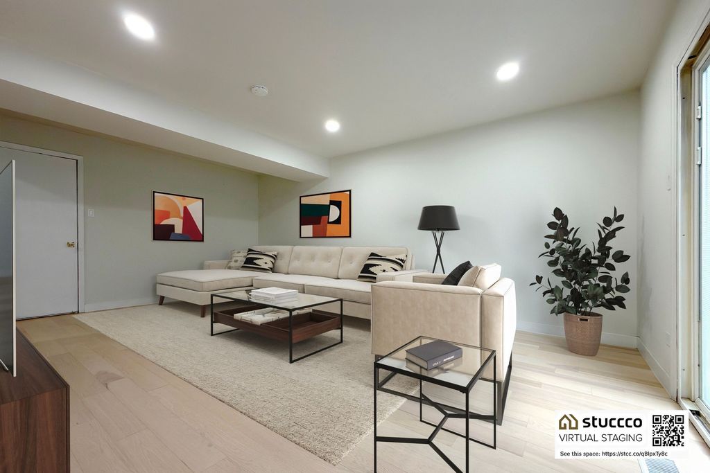 OPEN CONCEPT AT ITS FINEST! Totally turnkey this newly remodeled spacious 4 bedroom 3 full bath contemporary tri-level home on a large lot is just a few blocks to the elementary school and wonderful park. This home was thoughtfully and lovingly designed with high end finishes way beyond what you can see in the typical remodel turn around investment. It definitely could be your "forever" home. All you need to do is walk in the front door and you will know that this is your dream home. The first thing you will be struck by is the large formal foyer with high end white oak engineered hardwood flooring which has been installed at great expense throughout the entire home. The foyer then then opens into the amazing truly open living room, dining room and incredible kitchen with good sized eating area. The living room is light and bright featuring a big bay window (just waiting for custom cushion). There is recessed lighting and a very unique and creative redo of the woodburning fireplace framed by 2 designer brushed gold wall sconces. The dining room can accommodate a formal table that would easily fit 10. There is a gorgeous, brushed gold dining room fixture to set whatever mood you want to create. The kitchen is simply stunning keeping pace with the best of HGTV. Of course, there are matching top of the line matching GE stainless appliances, stainless vent hood over the stove, white quartz countertops with porcelain backsplash, stainless farm sink, brushed gold pulls on the soft close drawers and cabinets and an awesome brushed gold light fixture over the sink looking out into the living room. The quartz counter extends into the pass thru creating a great breakfast bar perfect for stools. You can't ask for more open than that! Upstairs you will find a very large primary bedroom with remodeled ensuite bath, a walk-in closet as well as another double closet There are 3 other guest bedrooms, a full remodeled hall bath with double sinks and porcelain tile. Of course, as was mentioned before there is white oak engineered hardwood flooring throughout the second floor. Last but not least is the ample family room with another gorgeous bathroom also with porcelain tile, recessed lighting, white oak engineered hardwood flooring and easy access through the sliding glass door to the huge backyard. There is also an entrance to the 2.5 car attached garage off the family room. One look is all it will take to make you want to move in tomorrow!