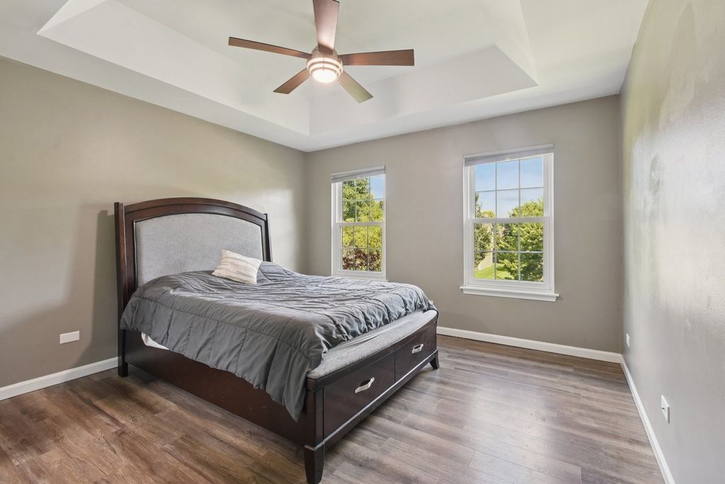 Spacious and move-in-ready 2-story home with full basement and an incredible backyard! Enjoy autumn nights on the spacious deck, curl up to a cup of hot chocolate around the oversized firepit, or enjoy stargazing in the adorable treehouse; all of which are surrounded by easy-to-maintain perennial landscaping & beautiful trees! As you enter this home take note of the "like-new" feel. Enjoy the recently painted walls, upgraded wood-look flooring, recently updated staircase, & a traditional floorplan ideal for everyday living. Just off of the oversized formal foyer is the perfect room for your formal dining, office, or playroom. The family/living rooms are perfect for entertaining and flow directly into each other. The charming family room offers a cozy brick fireplace perfect for holiday gatherings. Host events with ease in the the open concept kitchen which offers updated stainless steel appliances, a 5-burner stove, ample cabinet space, hardwood cabinetry, & peaceful views to the ultra-private backyard. Retreat to the upper level boasting a convenient 2nd floor laundry room, large primary suite, 2 guest bedrooms, and a private guest bathroom. The primary suite occupies the entirety of the 2nd floor's west wing and offers stunning tray ceilings, a private en-suite with airy vaulted ceilings and a bonus skylight. Enjoy 2 oversized closets, a private soaking tub, spacious vanity, & cleverly placed pocket doors which add wonderful charm. Need more space? Just bring your decorating ideas to finished basement boasting a 4TH BEDROOM, rec room/media room, & an enormous storage room. Near shopping, restaurants, parks/trail, private schools, and entertainment. Easy commute to 88. Well maintained, low taxes, and move-in-ready. This is the one you've been waiting for!