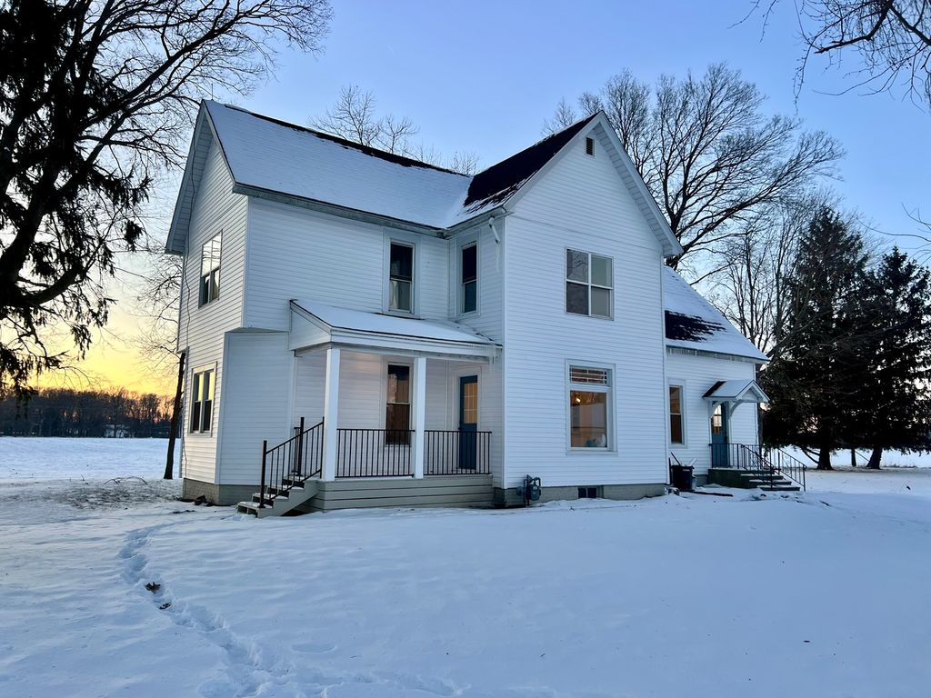 Welcome to the perfect blend of space and style in a peaceful country setting! Nestled on over an acre in St. Joseph school district, this freshly remodeled home offers modern farmhouse charm you'll love! A convenient circle drive welcomes you to the property. Once inside, you'll discover a bright and inviting space with four large bedrooms and three fully updated bathrooms. Enter into the large living room, which is highlighted by a cozy window seat and open sight lines into the formal dining room with an original built-in cabinet. You'll love the modern kitchen with brand new stainless appliances, quartz counters, and tile backsplash. Off the kitchen, you'll find a convenient coffee station and dropzone near the washer and dryer hookups. A main level bedroom and full bathroom add extra flexibility to the spacious floor plan. The entire main level boasts low-maintenance flooring, making everyday living as easy as it is stylish! Upstairs, you'll find three additional bedrooms - all with new carpet - as well as two bonus spaces that could be the perfect spot for an office, play room, or den. The two upper level full bathrooms have been beautifully styled with tile showers and quartz countertops. The unfinished basement and detached garage give you even more storage. New roof, gutters, and furnace in the last two years. Whether you're hosting gatherings or enjoying the sweeping country views, this property delivers a rare opportunity to have it all: space, upgrades, and an unbeatable location!
