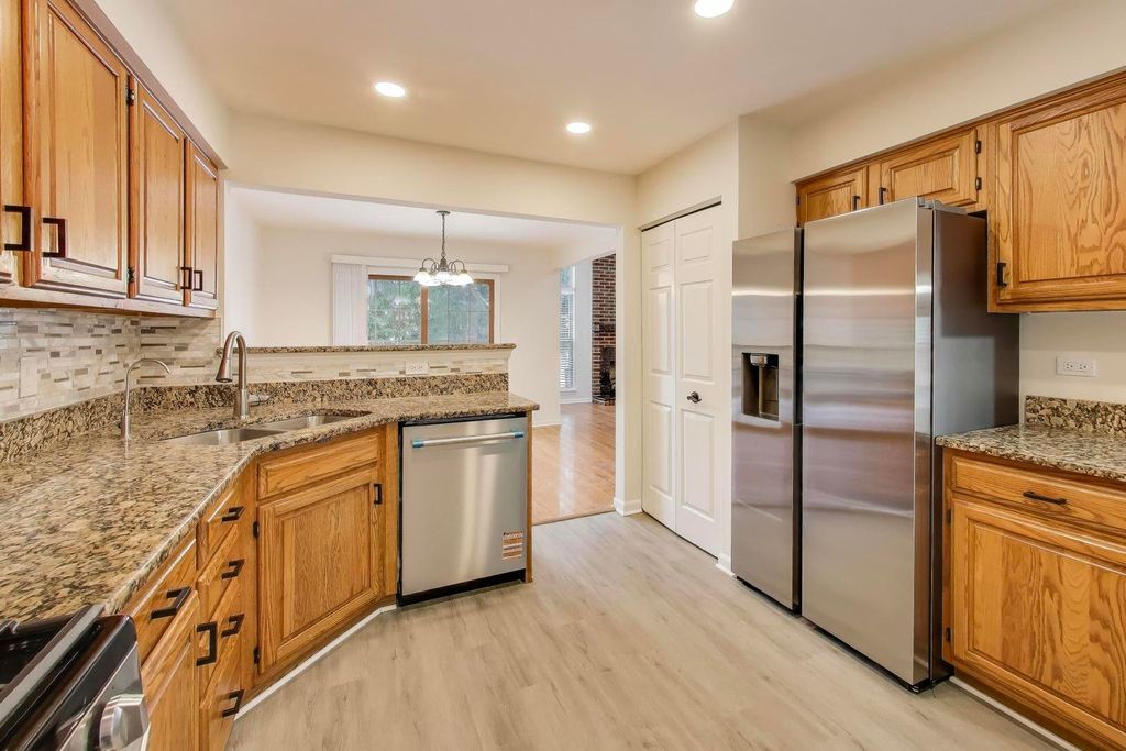 Just finished a full remodel with new flooring, a fresh coat of paint , all new appliances, and an updated bathroom, new light fixtures, new door knobs etc. so it's truly move in ready. The HOA replaced all roofs and gutters throughout the subdivision. The main level boasts a stunning living room with vaulted ceilings, skylights, cozy fireplace. Newer A/C, furnace, water heater. Upstairs has large loft. Master bedroom has vaulted ceiling, walk in closet and tub & separate shower & double sinks. Located near shopping, pavilion, library, minutes to the tollway. "Owner is a licensed real estate agent"