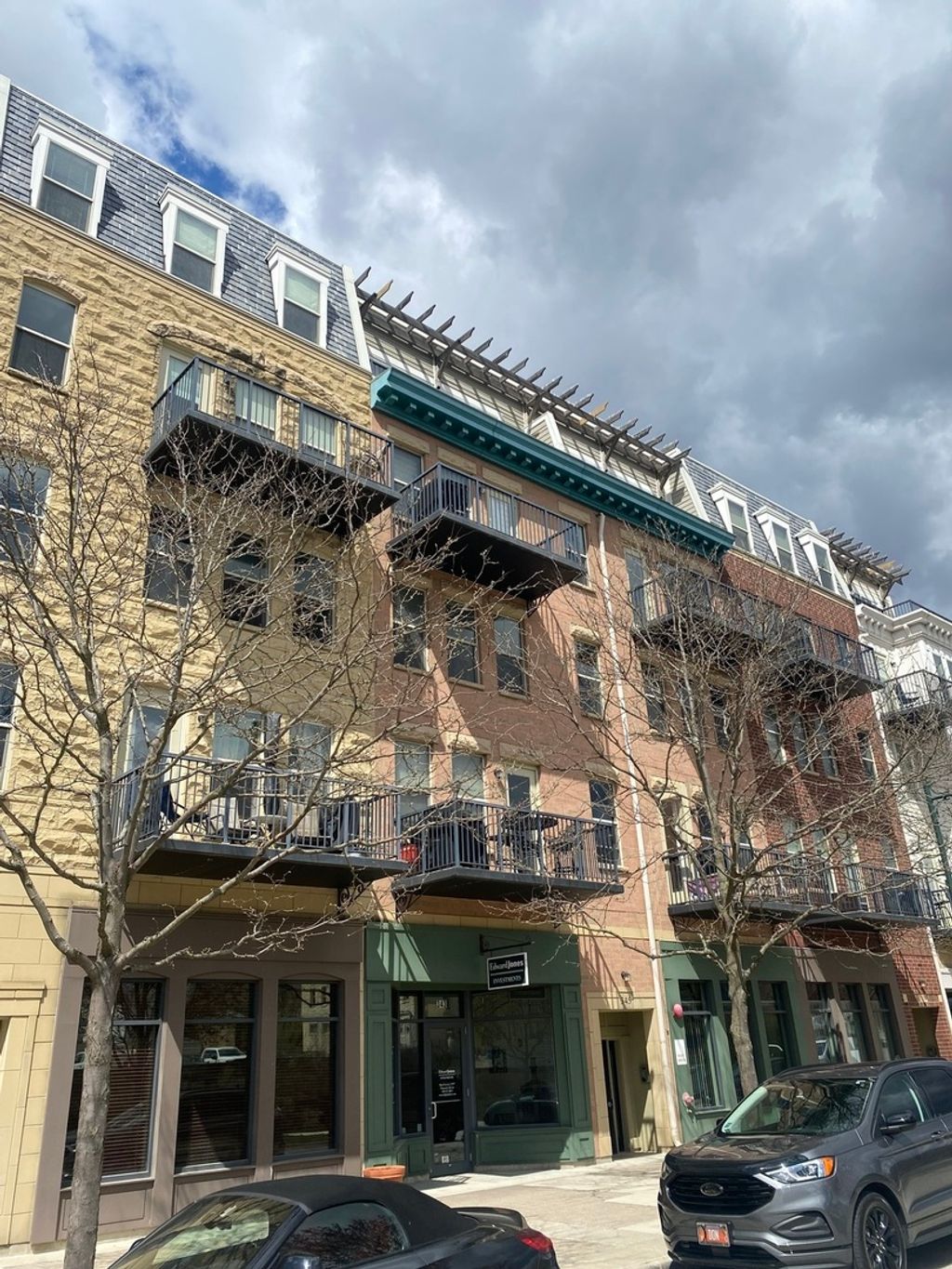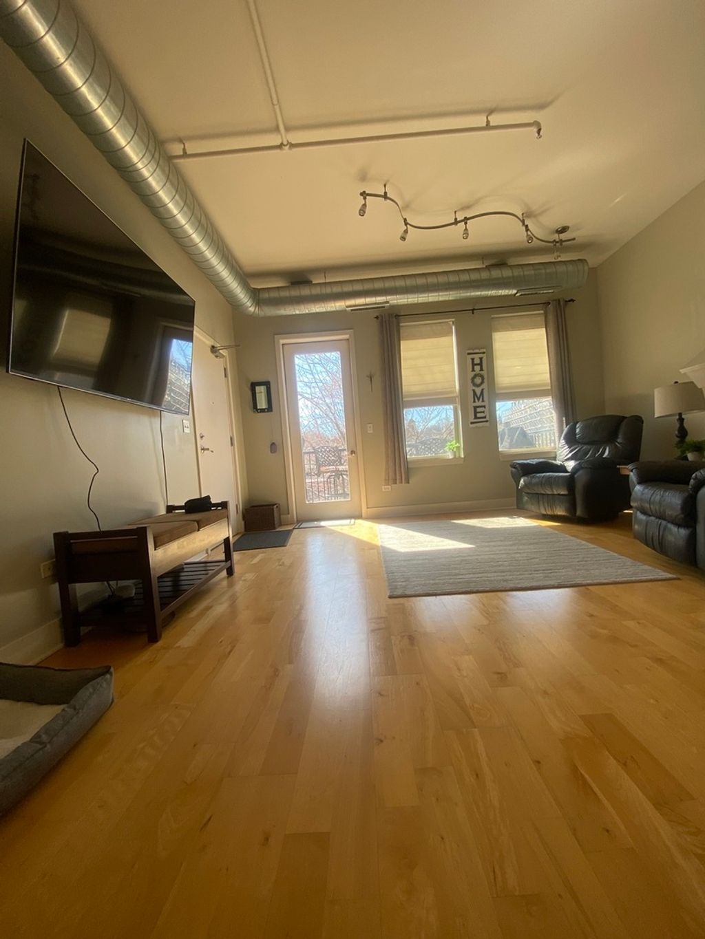 This 2-story condo with high ceilings features hardwood floors, laundry in unit, 42 inch cabinets, an open floor plan featuring large windows, and a balcony great for grilling & entertaining! This is walking distance to the Metra, walking trail, and all the restaurants, shops, and bars you could ever need! Garage parking included.