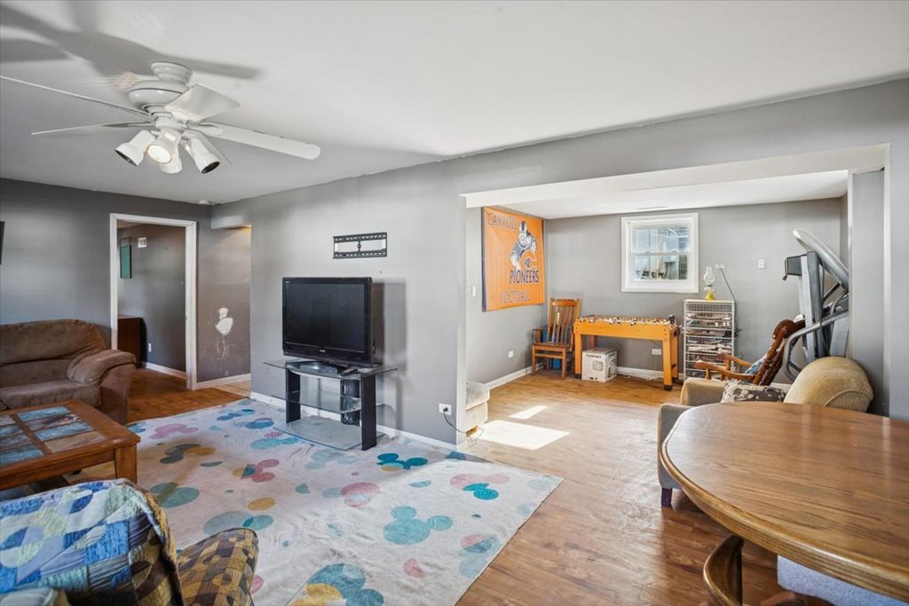 Spacious Glendale Heights raised ranch offers a wealth of features both inside and out. Please note there are some aesthetic updates a buyer may want, and the home is being sold as-is. The freshly upgraded kitchen includes a bay window, farmhouse sink, quartz countertops, and newer appliances (3 years old). The main floor bathroom is wheelchair accessible, ADA certified and has been completely renovated (5 years) with a new vanity, fixtures, and a walk-in shower with tiled surround. All bedrooms are equipped with ceiling fans, ample closet space, and window blinds. The large living room and expansive lower-level family room provide excellent entertainment spaces. The lower level features multiple egress windows, a fourth bedroom, and potential for a fifth. A full bathroom with a tub/shower combo enhances convenience and value, making this home suitable for multi-generational living. Additional highlights include basement waterproofing with a transferable warranty (10 years), a complete battery backup sump system with a dehumidifier (1.5 years), newer roof (8 years), water heater (2017), HVAC system (2025), and updated windows (2003). Outside, enjoy a spacious yard, an expansive concrete driveway, a large two-car garage, and a newer privacy fence. The location is just half a mile from the Sports and Aquatic Center, with multiple playgrounds within walking distance and easy access to I-355, Route 20, and Metra stations.