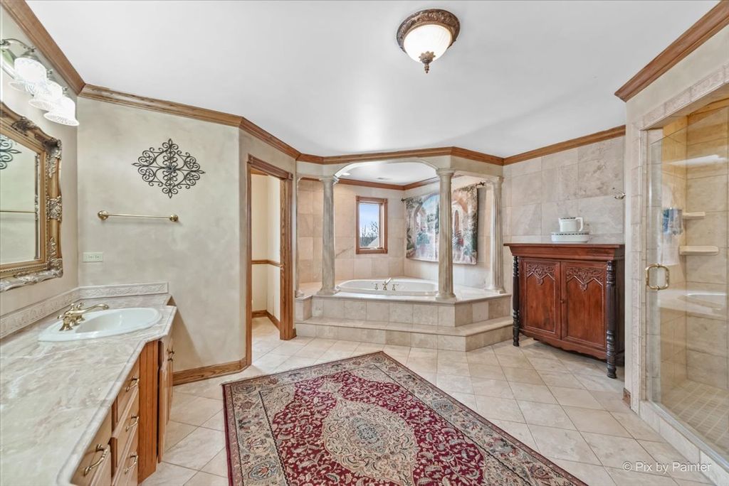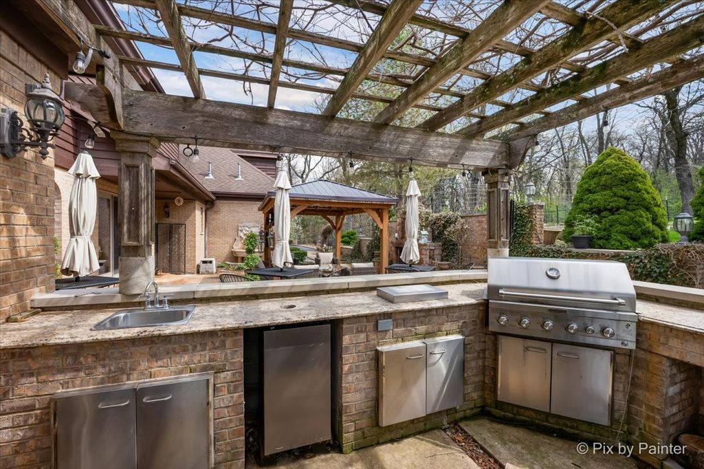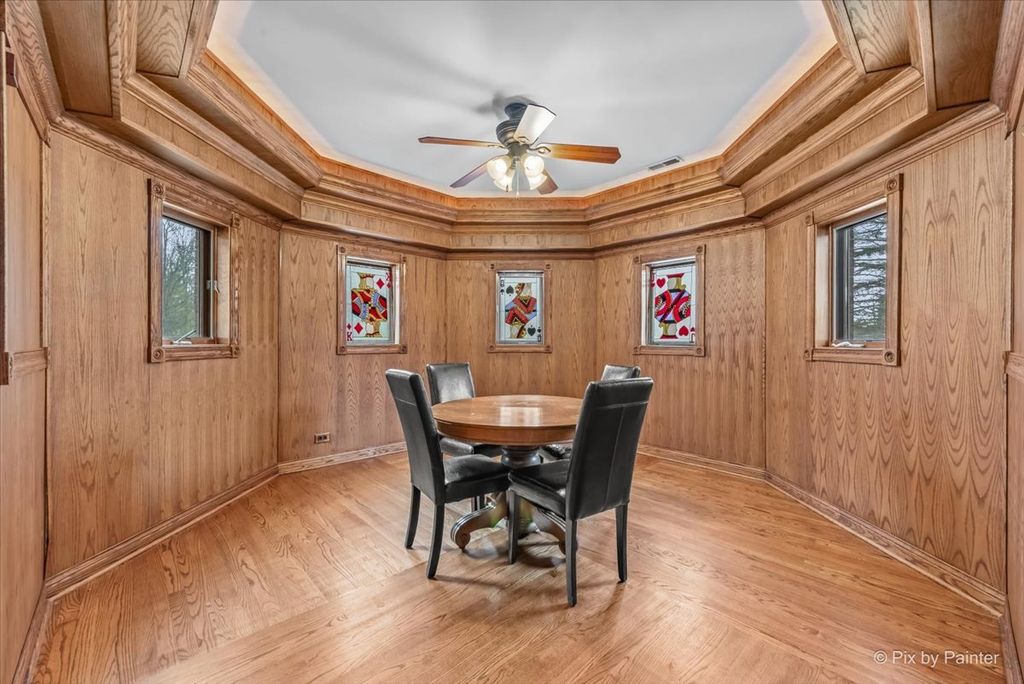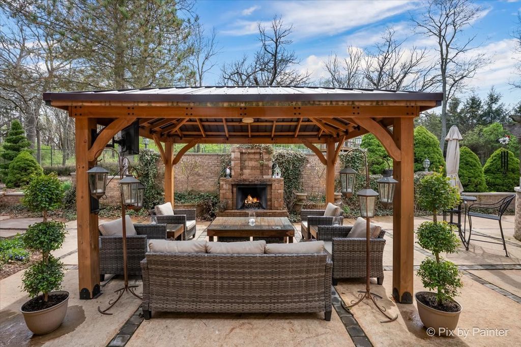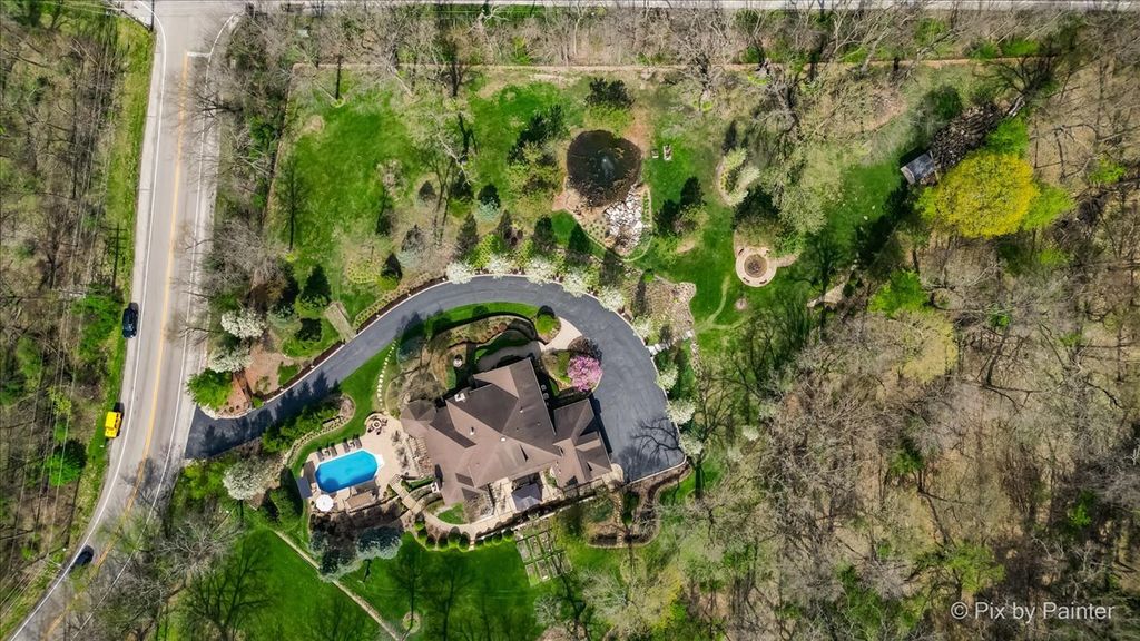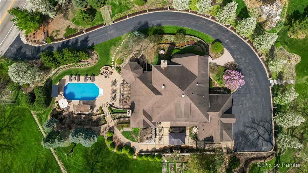 Privately positioned in prestigious North Haegers Bend, this custom estate offers refined interiors designed for luxury living and entertaining. Highlights include a chef's kitchen with Sub-Zero and Viking appliances, a primary suite with wood-burning fireplace, custom stained glass throughout, hardwood floors, and thoughtfully curated living spaces. Professionally designed and manicured grounds feature a pool, Jacuzzi, outdoor kitchen, fire-pit, cabana, pond, and mature landscaping, just minutes from Fox River access and top-rated schools.