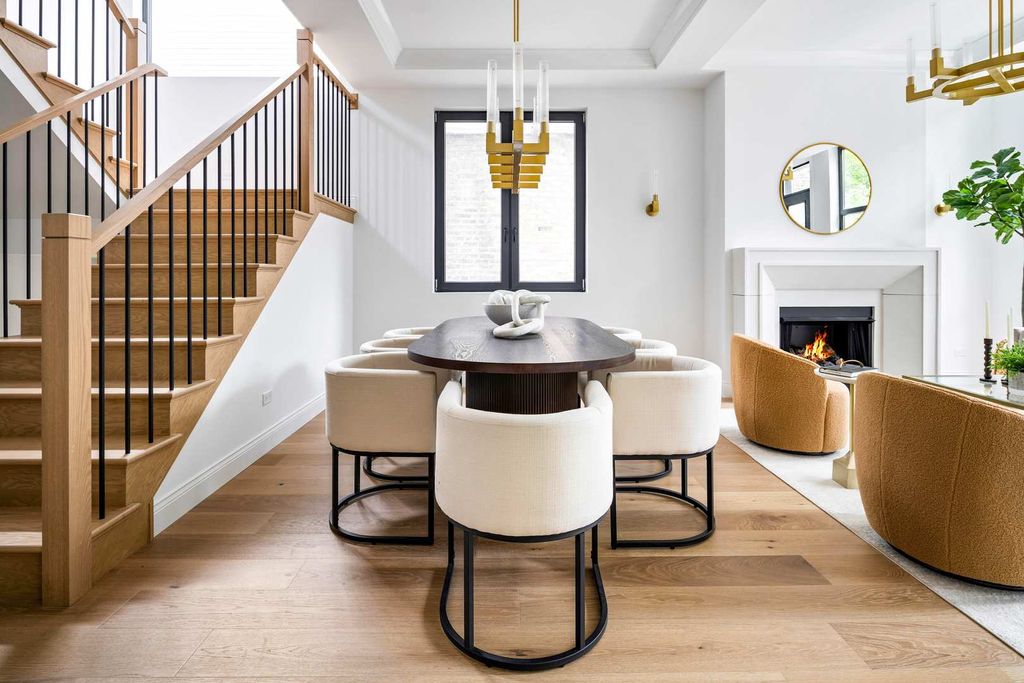 SOPHISTICATED NEW CONSTRUCTION single-family home exuding refined elegance, ideally situated on one of Bucktown's most coveted tree-lined streets. This exquisite 5-bedroom, 3.1-bath residence with a 2-car garage and four private outdoor spaces offers a meticulously designed layout, premium finishes, and 7" wide-plank oak hardwood flooring throughout. Soaring 10-foot coffered ceilings and two rooftop decks - along with a yard and garage deck - complete this exceptional home. Upon entry, you're greeted by an impressive formal living and dining area thoughtfully designed for entertaining, featuring a French-inspired limestone fireplace and a glass-enclosed wine cellar that beautifully anchors the dining space. The statement chef's kitchen is highlighted by a striking oversized arched window and equipped with top-tier Sub-Zero and Wolf appliances, custom full-height white oak cabinetry, quartz countertops, a waterfall island with breakfast bar, built-in wine fridge, designer hood, and 6-burner Wolf range with pot filler. The expansive adjoining family room, complete with a second French-inspired cast stone fireplace, provides a warm and inviting setting for relaxing evenings, complemented by a beautifully appointed powder room. The primary suite is a true sanctuary, distinguished by floor-to-ceiling arched windows, an impressive custom walk-in closet, and a spa-inspired ensuite featuring a dual quartz vanity, Waterworks fixtures, an oversized steam shower, and heated floors. Two additional well-proportioned bedrooms, a full bath with heated floors, and a convenient laundry area complete this level. The lower level offers a spacious family/media room with a wet bar, two generous bedrooms, and a beautifully designed full bath - perfect for guests or extended living. Designed for summer gatherings, the backyard and garage deck with a custom-built pergola provide an incredible outdoor extension of the main level, while the massive rooftop decks await transformation into your private rooftop oasis. All of this, perfectly positioned in an unbeatable Bucktown location - steps to Damen and Armitage, The 606 Trail, Blue Line, coffee shops, Mariano's, fitness studios, restaurants, nightlife, parks, and expressways.