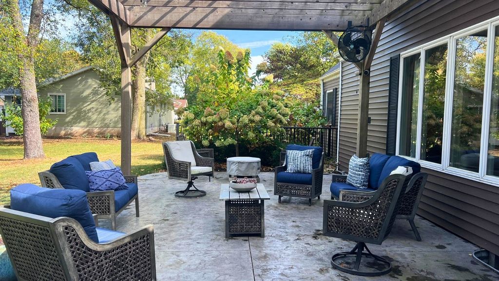 This charming Cape Cod style home is for sale in Sheffield, IL, Located on the south edge of town on a 0.67 acre lot overlooking a small field and timber, this 4 BR, 4 bath home is the ideal location for those who want to be in town but also look out their front door and see the quiet countryside. Attached, insulated 2 car garage. The first floor provides 1829 sq ft with 2 BR and 2 baths. The second-floor features 2 BR and 1 bath with a large laundry room and 807 sq ft. In the finished walk-up basement, you'll find an additional non-conforming BR and bath and 609 sq ft of living space. In total, the home has 3245 sq feet of finished space. The basement and 2nd floor also provide an ADDITIONAL 900 sq ft of storage plus a large mechanical room, where the new furnace/AC, water heater, water softener, whole house humidifier and 200-amp electric service is located. Recent updates to the home include a new furnace and central air as well as new gutters and leaf guard in the summer of 2025. Other indoor improvements include an updated kitchen with granite countertops and a reconfigured, open floor plan. 3 of the bathrooms and laundry have been updated as well. Hard wood floors and newer carpeting throughout the 1st and 2nd floor. Vinyl replacement windows were installed about 10 years ago, along with vinyl siding and steel roof. The outdoor space now includes a large, stamped patio with cedar pergola and private 5-6 person Jacuzzi hot tub. The front entrances were updated with new composite decking and black aluminum rail. A basketball court was added, featuring a Goalrilla hoop. An adorable play house with loft sits in one corner of the back yard, while a 12X16 quality built utility shed sits in the other. The yard features several mature trees, including a beautiful catalpa and dog wood cherry that are perfect for climbing. The backyard also has a privacy fence spanning the north side of the yard. Low maintenance flower beds feature established hydrangeas and a variety of hostas.