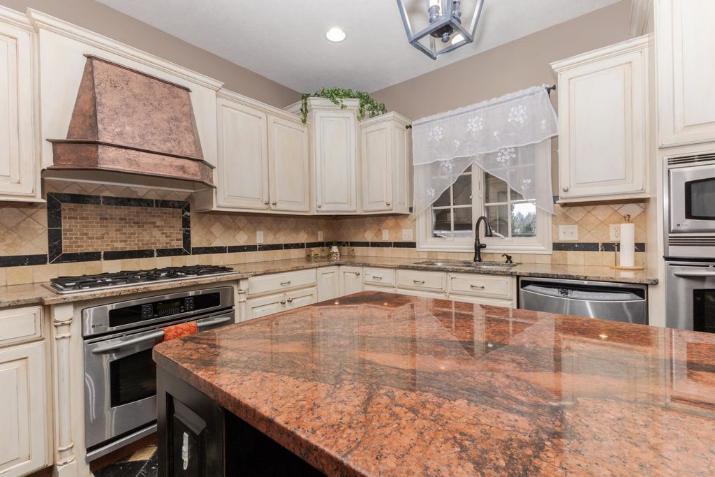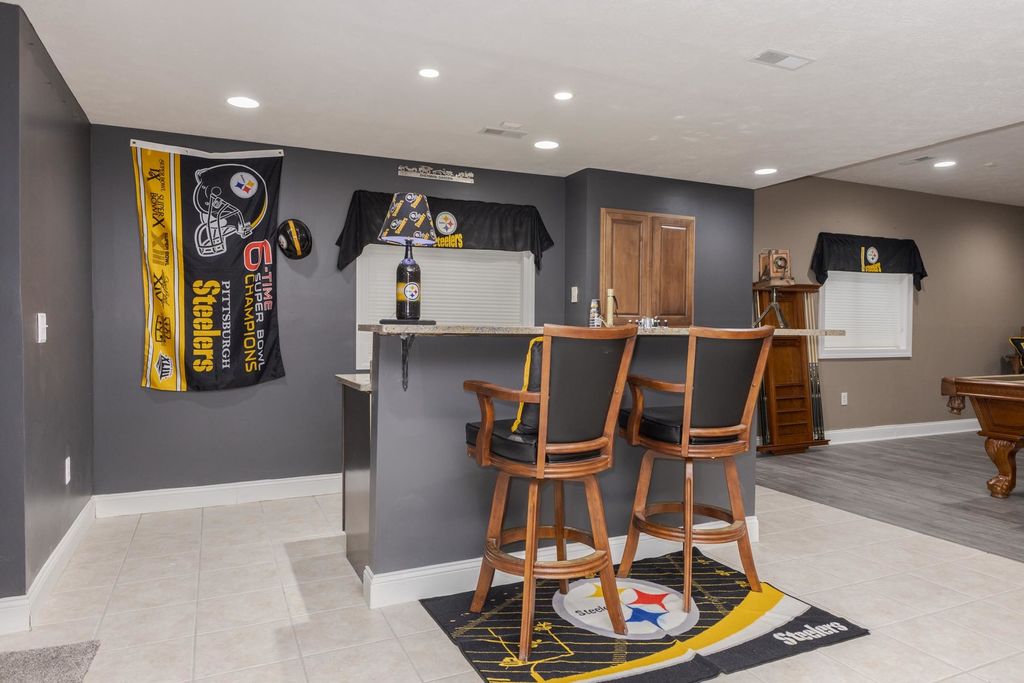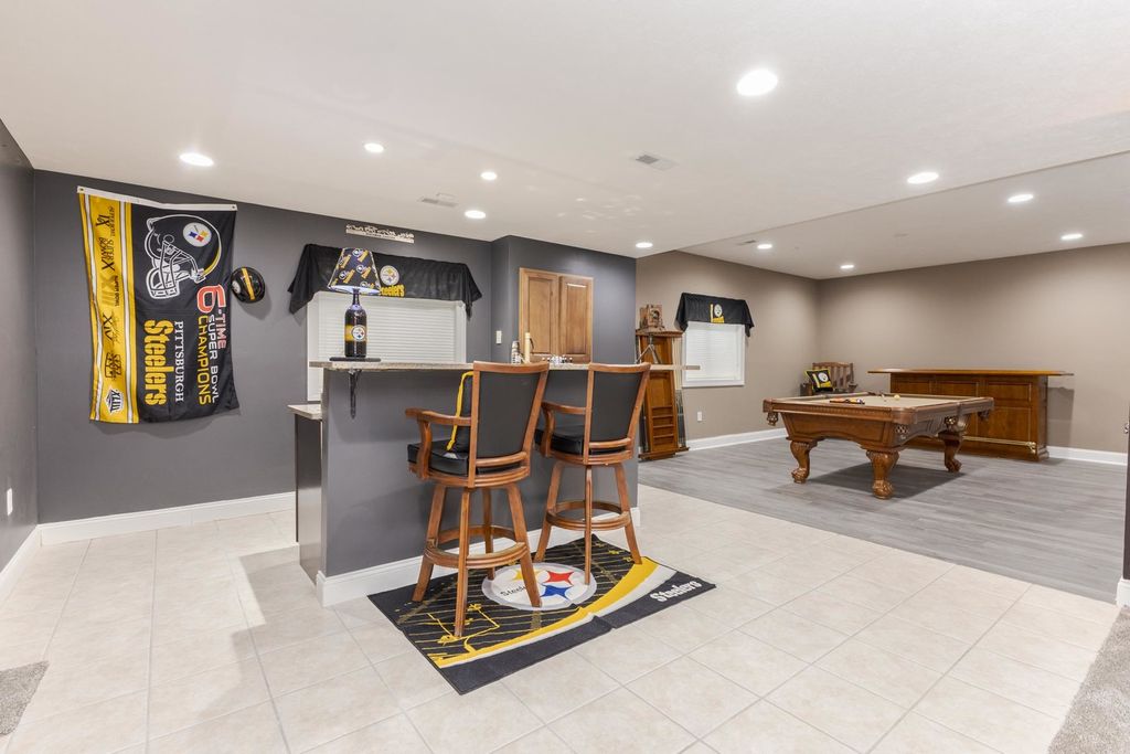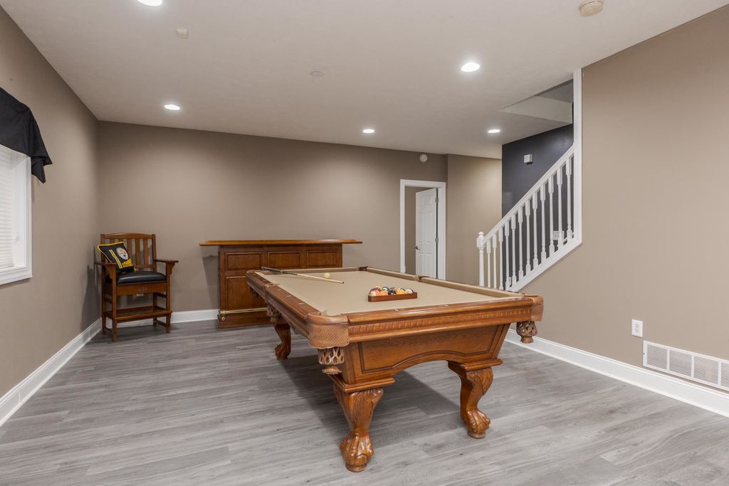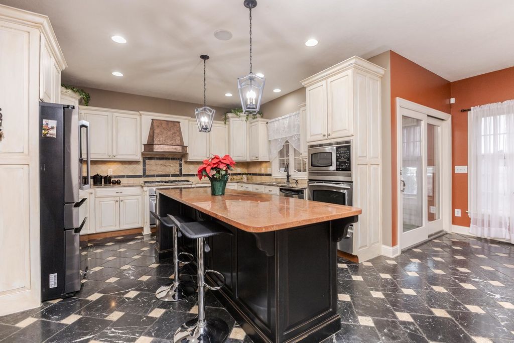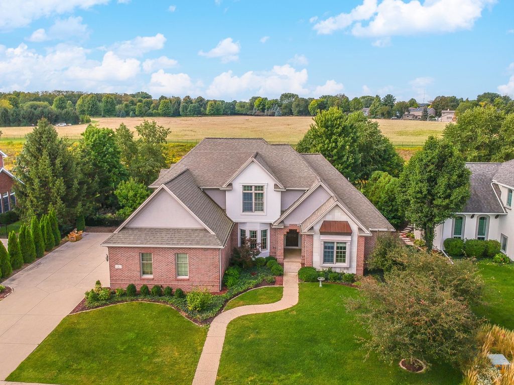 One of a kind, custom built David Hundman home in prestigious Stonebrook Subdivision and no backyard neighbors! Elegant and functional 1 1/2 story plan with main floor great room with vaulted ceiling, featuring Cherry hardwood flooring and large windows bringing natural light in from outdoors and a cozy gas 2- sided fireplace to warm your friends and family. The separate dining area is nice to meet and greet your guests and can handle large gatherings with no problem! A must-see home with a Chefs kitchen complete an enormous granite surface island with stools to prep meals, and a stainless-steel appliance package, including newer Samsung washer/dryer set. The upper level has 3 generous sized bedrooms with large closets, 2- connected with a Jack- Jill bath convenient for the family all with new carpet. Perfect home for entertaining friends with 2- wet bars, one on each level. The large owners suite features a private entrance to the rear patio and also includes a gas fireplace, walk-in shower, jetted tub, double vanities and a large walk-in closet with custom organizers. Conveniently located on the main level is an office for those stay at home workers that is large and spacious as well. The massive lower level offers a 5th bedroom complete with a full bath and is a great place to entertain as well, with a rec room, wet bar ( recently all new cabinets/counter/ bar top) including a pool table that stays! If you need a place for your pets, well there's a convenient enclosed back porch area with a dog door to the fenced back yard. Great curb appeal with a stylish 3- car side load garage with an Epoxy floor coating on it. Enjoy a private backyard retreat with beautiful professional landscaping and a large stone patio and a fenced area for small children and your pets. The design of this home is truly like no other you've seen. Recent updates include, both furnaces (21), all new carpet on upper floor, and main floor office(25), fresh painted kitchen, dining (25)