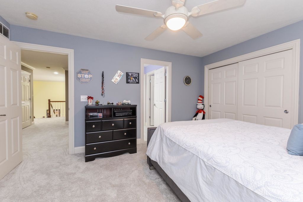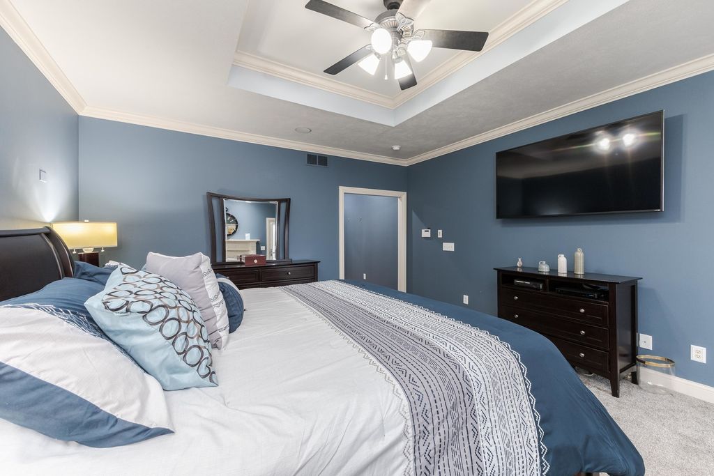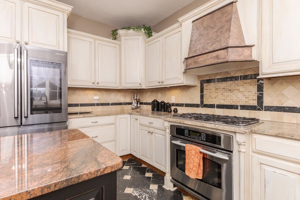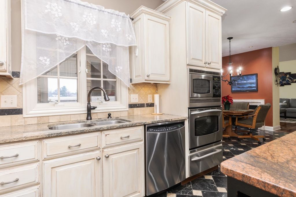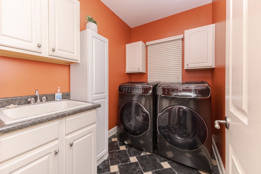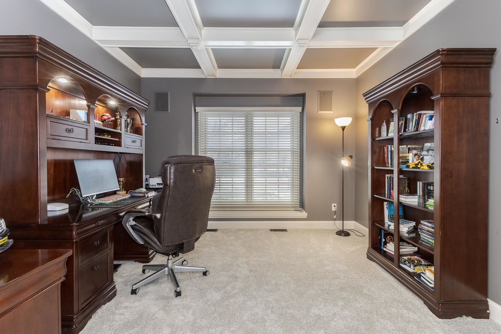 One of a kind, custom built David Hundman home in prestigious Stonebrook Subdivision and no backyard neighbors! Elegant and functional 1 1/2 story plan with main floor great room with vaulted ceiling, featuring Cherry hardwood flooring and large windows bringing natural light in from outdoors and a cozy gas 2- sided fireplace to warm your friends and family. The separate dining area is nice to meet and greet your guests and can handle large gatherings with no problem! A must-see home with a Chefs kitchen complete an enormous granite surface island with stools to prep meals, and a stainless-steel appliance package, including newer Samsung washer/dryer set. The upper level has 3 generous sized bedrooms with large closets, 2- connected with a Jack- Jill bath convenient for the family all with new carpet. Perfect home for entertaining friends with 2- wet bars, one on each level. The large owners suite features a private entrance to the rear patio and also includes a gas fireplace, walk-in shower, jetted tub, double vanities and a large walk-in closet with custom organizers. Conveniently located on the main level is an office for those stay at home workers that is large and spacious as well. The massive lower level offers a 5th bedroom complete with a full bath and is a great place to entertain as well, with a rec room, wet bar ( recently all new cabinets/counter/ bar top) including a pool table that stays! If you need a place for your pets, well there's a convenient enclosed back porch area with a dog door to the fenced back yard. Great curb appeal with a stylish 3- car side load garage with an Epoxy floor coating on it. Enjoy a private backyard retreat with beautiful professional landscaping and a large stone patio and a fenced area for small children and your pets. The design of this home is truly like no other you've seen. Recent updates include, both furnaces (21), all new carpet on upper floor, and main floor office(25), fresh painted kitchen, dining (25)