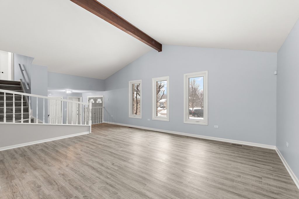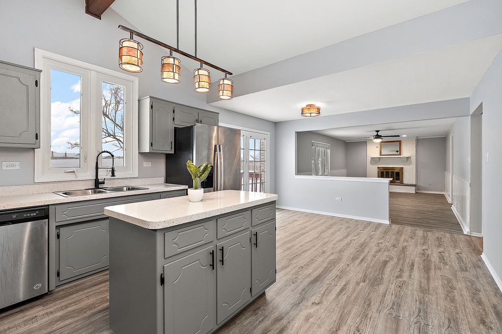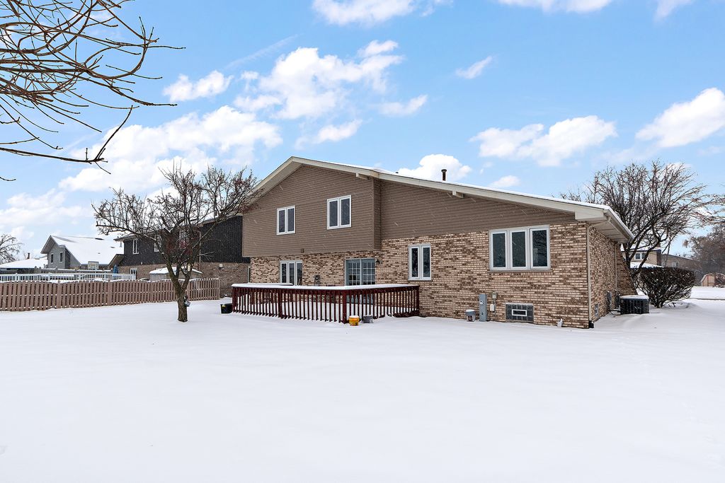 Welcome to this beautifully renovated, move-in-ready 4-bedroom, 3-bath home in the sought-after Brook Hills subdivision of Orland Park! This property boasts new windows, siding, and an efficient HVAC system. A roof that is just six years old provides peace of mind for years to come. As you enter, you'll be greeted by a spacious foyer that leads into a bright living room, which seamlessly opens to a large dining room-perfect for entertaining guests. The eat-in kitchen offers wonderful views into the welcoming family room, featuring a charming brick fireplace that's ideal for cozy evenings and gatherings. Expansive vistas through the entire back of the house are accentuated by large windows that flood the space with natural light. The main level includes a fourth bedroom and a full bathroom, while the second level features a private ensuite and two additional bedrooms with a shared hall bathroom. This versatile layout is ready for your personal touch. The finished basement provides extra living space along with plenty of storage options. Outside, an irrigation system keeps your landscaping lush, and a great deck overlooks the backyard, which is perfect for a pool, playsets, gardens, or anything else you envision for outdoor living. With a playground just a short walk away, this home is ideal for families! The spacious concrete driveway enhances the curb appeal. With nothing left to do but move in and just minutes from shopping, restaurants, and Metra, this home truly combines comfort, convenience, and lifestyle all in one!