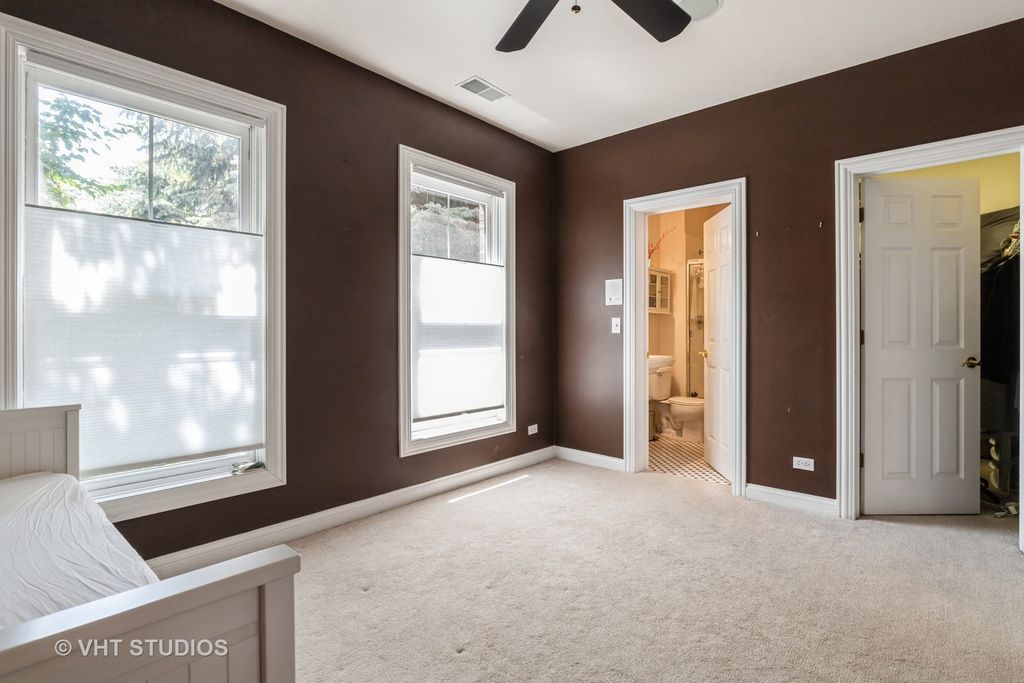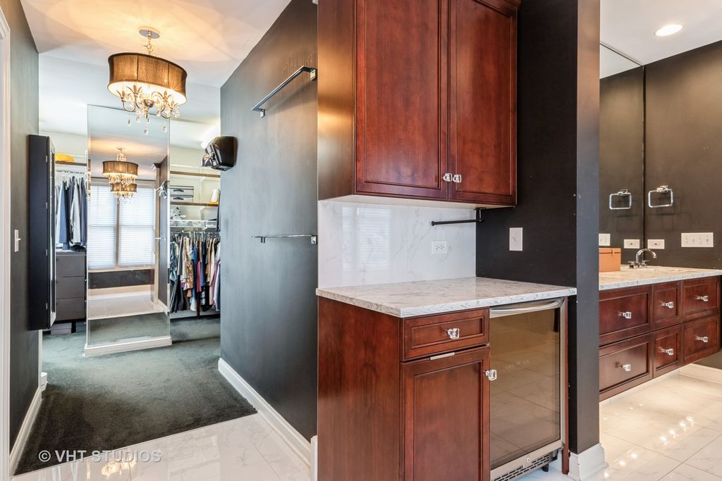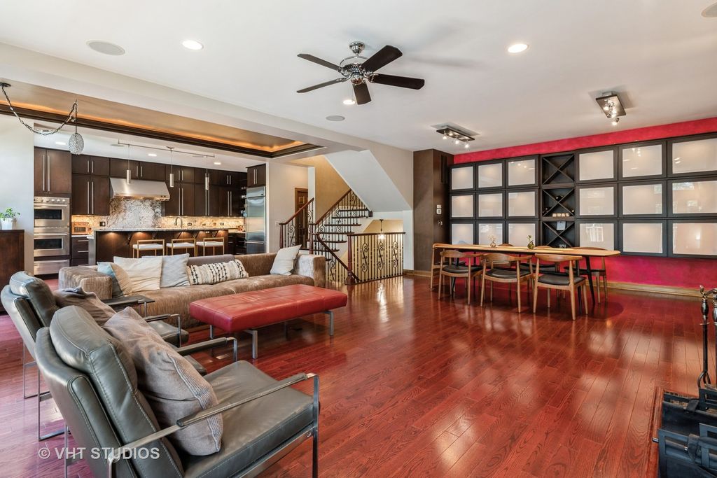 Rarely available end unit with designer finishes and golf course view private rooftop deck! This stunning townhome offers exceptional architectural detail throughout. Gourmet kitchen features pro-grade stainless steel appliances, warming drawer, beverage cooler, granite countertops, island seating, and granite backsplash. Open concept layout flows into a grand living room with custom tile fireplace and built-in wine wall. Elegant staircase leads to a luxurious primary suite with spa like bath, coffee bar, and walk in closet. First-floor en-suite bedroom plus third-floor bedroom with full bath. Enjoy golf course and sunset views from the private rooftop deck. Walk to parks, lake, shops, restaurants, and Metra. Award-winning schools. HOA covers rooftop deck and balcony maintenance. The Glen living at its best!
