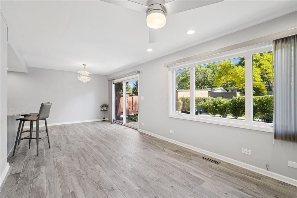 A rare opportunity to own and live in this fantastic all brick three-story townhome in Carriage Hill built by Blietz. An Impeccably maintained low maintenance community. A desirable location in East Glenview allowing you to walk to parks, the train and plenty of shopping and dining. This home has gone through a recent and complete renovation with beautiful finishes throughout. Absolutely nothing to do but move right into this charming, split level townhouse that feels and lives like a single-family home. An open and bright living room with vaulted ceiling brings in incredible natural western exposure light. Gorgeous hardwood flowers and stone floors throughout. All brick on the exterior with large picture windows from every room. There is more closet space in this home than you would ever imagine. Each of the large bedrooms has multiple floor, ceiling, closets, and vaulted ceilings, making them feel extra spacious. Your main living level Is a large Family Room / Dining room open from the kitchen with a breakfast bar that seats for 4 stools. The kitchen is absolutely beautiful with so many cabinets and a large peninsula. Granite countertops, gorgeous Dove Gray cabinets with stainless steel appliances. Under cabinet lighting enhances an absolutely stunning backsplash. An extra wide patio door opens onto a gorgeous, private and large terrace. On the same level is a beautiful powder room with access to a laundry and utility room with a full set of washer dryer appliances. Here is a surprise that under half of the home is a tall concrete finished floor and wall step-in crawlspace. You have to see it to believe how much storage you will now have in your own home. So many details throughout include beautiful, custom window treatments, and all closets have custom shelving and rack systems. Your deeded, incredibly long all brick garage, #32 is only steps from your home with a remote keypad, Interior multiple lighting options and electrical outlets for your convenience and or workshop space. Plenty of guest parking, both in the back and the front of your home. Glenview award-winning schools both district 34 and district 225. Lions, Pleasant Ridge, Springman, and Glenbrook South High School. Amazing location allows you to be close to downtown Glenview, and steps from the metro train, beautiful parks, shopping and dining. Low taxes and month assessment. Unbeatable value! Don't miss your chance to make this wonderful home your new home. Welcome home!
