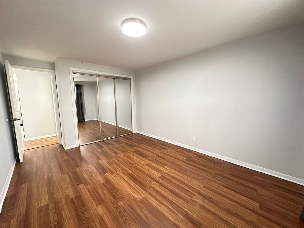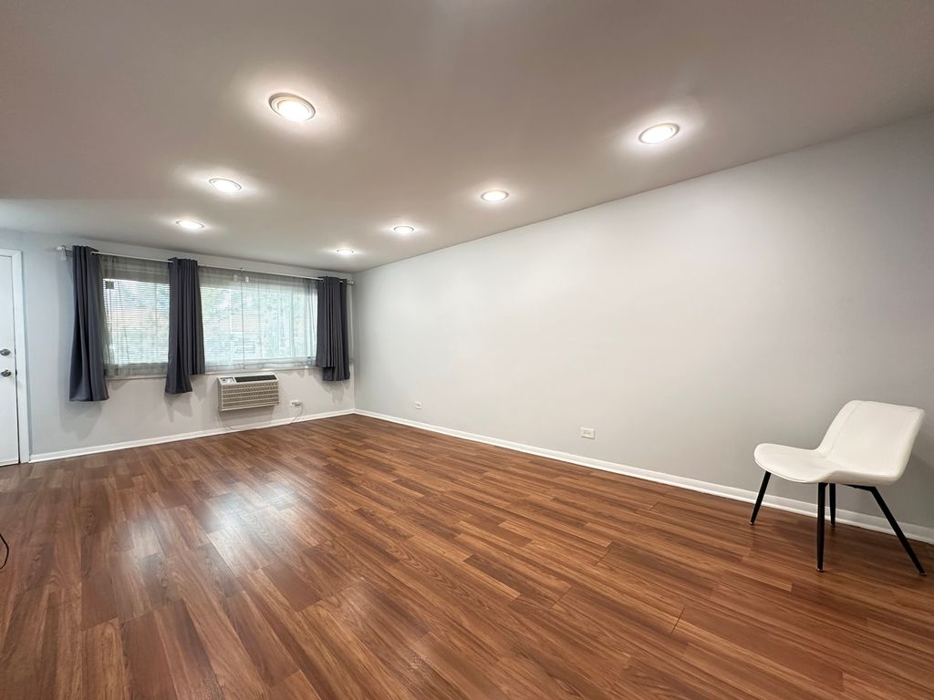 Spacious, sun-filled condo on 1st floor (no stairs)! This recently remodeled unit offers 2 generously sized bedrooms, kitchen with white, soft closing cabinets, quartz countertops and stainless steel appliances. Updated bathroom. Easy care wood laminate floors. Freshly painted and ready to move in. Laundry and storage located just outside the unit. 1 car assigned parking space included in the price. Great location with walking distance to Blue Line Station. No rentals. Cats allowed.