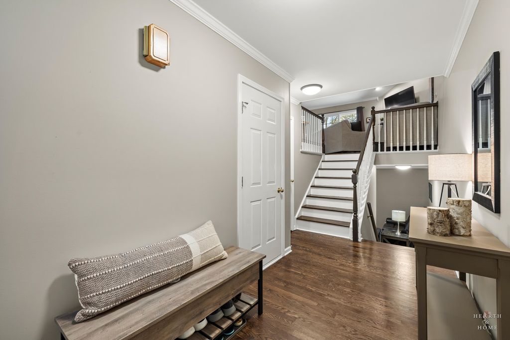 Welcome home to 679 Barlina Rd, a bright and beautifully maintained 2-bed, 2-bath townhome the highly sought after Parkview Estates. This townhome is tucked away in a quiet cul-de-sac just minutes from parks, shopping, and Crystal Lake's vibrant downtown. Step inside to an inviting open-concept living area featuring soaring ceilings, gorgeous hardwood floors, and a cozy gas log fireplace-perfect for relaxing nights in or effortless entertaining. Large windows, and skylights, fill the space with natural light, highlighting the home's warm finishes. The Stunning White and Stainless-Steel kitchen was just updated in 2022! The kitchen has wonderful table space and also walks out to a large deck area that soaks in beautiful, private nature views! The private master suite offers a jetted soaking tub with separate shower, and double vanity sinks, and private water closet. The master closet is extraordinarily large! Outside of the master suite there is a loft area that can be used as an office, exercise area, playroom etc. Enjoy the lower level that features a large family room that walks out to the backyard! The floor is heated porcelain tile! You will also find a comfortable second bedroom, a 2nd full bathroom, large laundry room, and lots of storage! Additional perks include an attached garage, low-maintenance living, and a serene setting within a beautifully kept community. Love where you live!