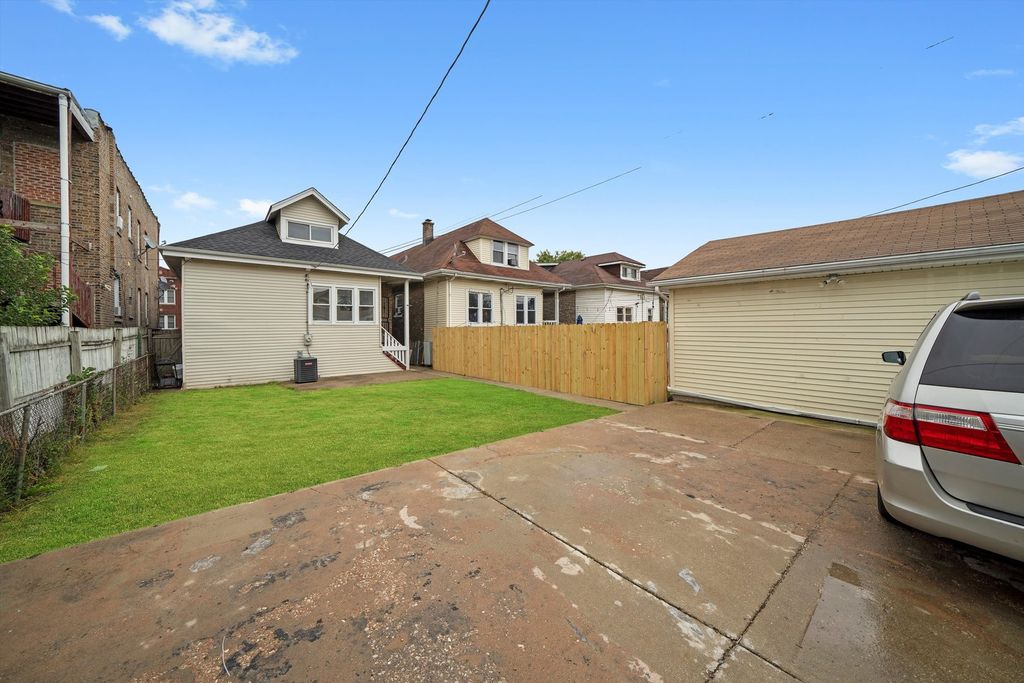 Don't miss this incredible opportunity to be the proud owner of this beautifully updated brick bungalow in a highly appreciating neighborhood in Chicago! This property has it all! Open concept space from the entrance to the back! Incredible layout for entertaining during the holidays with a large living room, dining room, and large kitchen! Beautiful and recently refinished hardwood floors throughout. High ceilings with tons of natural sunlight. Large kitchen with modern 42 in cabinets and gorgeous quartz countertops. Nicely updated bathrooms with newer vanity and ceramic tile. A total of 5 bedrooms and 2 full baths for a large family! This home features a HUGE finished basement with its separate entrance, full bath and bedrooms! Perfect for an in-law suite or for additional rental income! Home features newer mechanicals, brand new roof, brand new gutters, new cement front steps, newer fence, and a large cement pad for parking multiple vehicles. Extremely LOW taxes for the neighborhood! They will be even lower with a homeowners exemption! Close to shopping, restaurants, public transportation, highways and more! Highly appreciating neighborhood! Schedule your showing before this amazing home is gone!!!