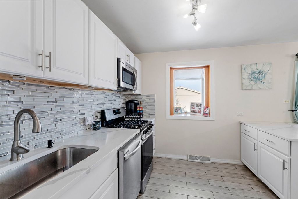 Don't Miss this Delightfully Updated 3 Bed 2 Bath Bi-Level on Over-Sized Corner Lot ideally located in Hazel Crest Highlands! Special Features include: Beautifully Updated Kitchen with fresh White Cabinets ~ Stylish Glass-Tile Backsplash ~ Stainless Steel Appliances ~ Greenhouse Window, Sleek Fully-Updated Main-Floor Bath w/Custom Tile-Surround Shower, Updated Flooring, Updated Fixtures, Recessed Lighting, Ceiling Fans in each Bed, and a Back Deck perfect for a BBQ. Contact your agent NOW to schedule a private tour!!! *Submit your Best Offer by 5 p.m. Sunday December 7th.
