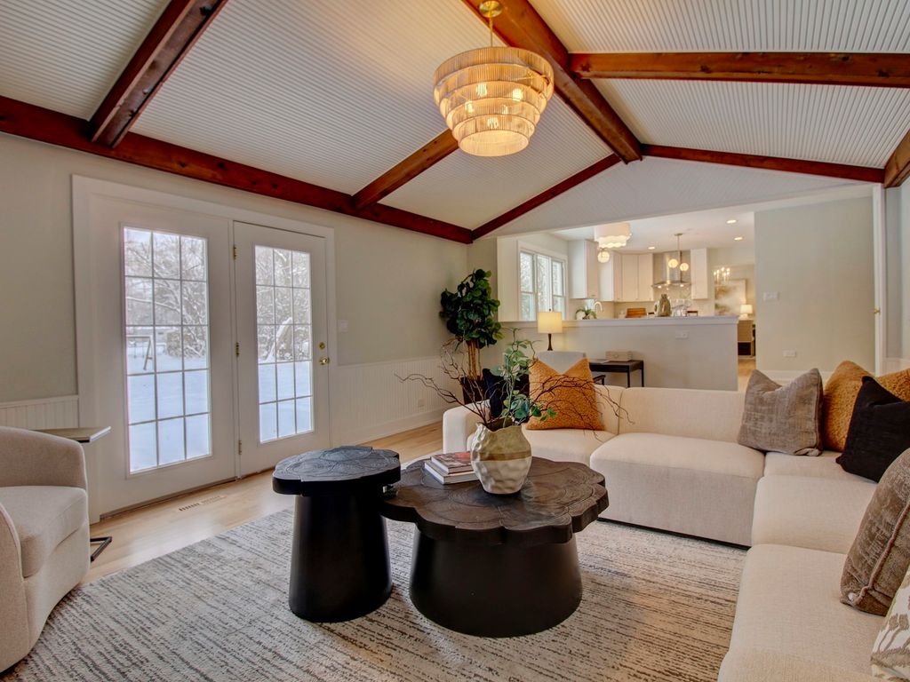Welcome to this newly remodeled home, set on an incredible over half-acre lot with a fully fenced yard and a serene setting tucked back from the street for added privacy. Every inch of this property has been thoughtfully updated with high-end finishes and modern conveniences. Step inside to a luxury custom-designed kitchen that will impress even the most discerning chef. It features plentiful white shaker cabinetry, a custom wood island, quartz countertops, beverage fridge, and premium stainless steel appliances. The main level showcases brand new hardwood floors throughout, all new designer lighting, and a separate dining room with custom trims and color drenching. The kitchen opens into a spacious family room that boasts vaulted ceilings and a cozy fireplace framed by custom arched built-ins, creating the perfect backdrop for everyday living or entertaining. Retreat to the large primary suite, complete with a generous walk-in closet and a beautifully remodeled primary bath offering a double vanity and incredible walk-in shower. Three additional large bedrooms and a fully remodeled second full bath complete the upper level.The expansive finished basement provides even more living space with sleek luxury vinyl flooring, ideal for a recreation room, home gym, or play area. A gorgeous remodeled main-level powder room adds convenience. Major mechanicals and systems have been updated for peace of mind, including a new furnace, new A/C, new windows, upgraded plumbing and electrical, and a new electrical panel. Brand new extra wide driveway was installed and provides extra parking in addition to the 2 car attached garage. The property is currently on a well, but city water is available at the street, and the home is already connected to city sewer. Outside, enjoy re-done landscaping that enhances the home's curb appeal, a back patio for grilling and entertaining that opens into the gorgeous fenced backyard. Located in a prime area close to shopping, dining, and highways, and situated within the highly sought-after Hinsdale Central School District, this home offers the perfect blend of luxury, comfort, and convenience.