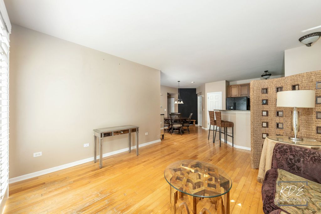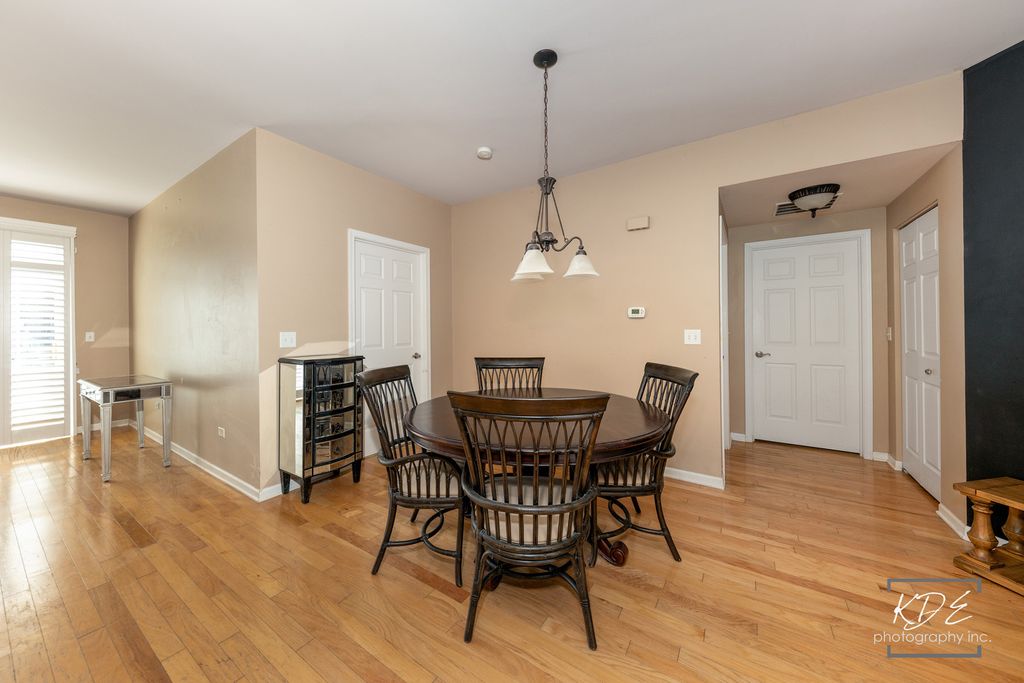 AMAZING 1ST FLOOR, END UNIT CONDO FACING THE LUSH COURTYARD. 2 bedroom/2 bath/2 car attached garage home in Neudearborn Station. Covered front porch with room for outdoor furniture welcomes you. Full view storm door on front door allows for extra light. Open flow floor plan with wood floors, living area, dining area and large, U shaped kitchen. Granite countertops & backsplash, breakfast bar with loads of seating, large pantry closet, gas range with microwave above. Double stainless steel sink with disposal & upgraded faucet. 42" upper wood cabinets. Lower cabinets with some roll outs. Refrigerator with ice & water dispenser. Large primary bedroom with wood floors, ensuite bath with double sink vanity, soaking tub, separate shower & customized walk in closet. 2nd bedroom has walk in closet. Laundry room has sink with counter and lower storage, built in upper cabinets above washer and dryer and access to garage. Garage has new keypad for exterior entry. Additional interior features include white trim, 6 panel white doors with brushed nickel hardware, brand new screens in all windows, plantation shutters in all windows. Sliding door to concrete side patio allows for additional outdoor space or grilling. Fabulous location close to highway, train station, shopping, dining & award winning, Naperville District 204 schools. Only one owner who did many upgrades & added extras after purchasing from builder. This model is rarely available so with its great layout & location, it's ready for the next buyer to refresh it and call it HOME!