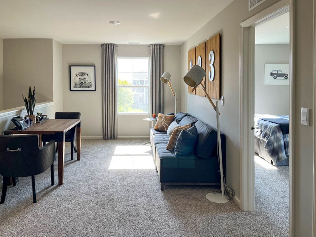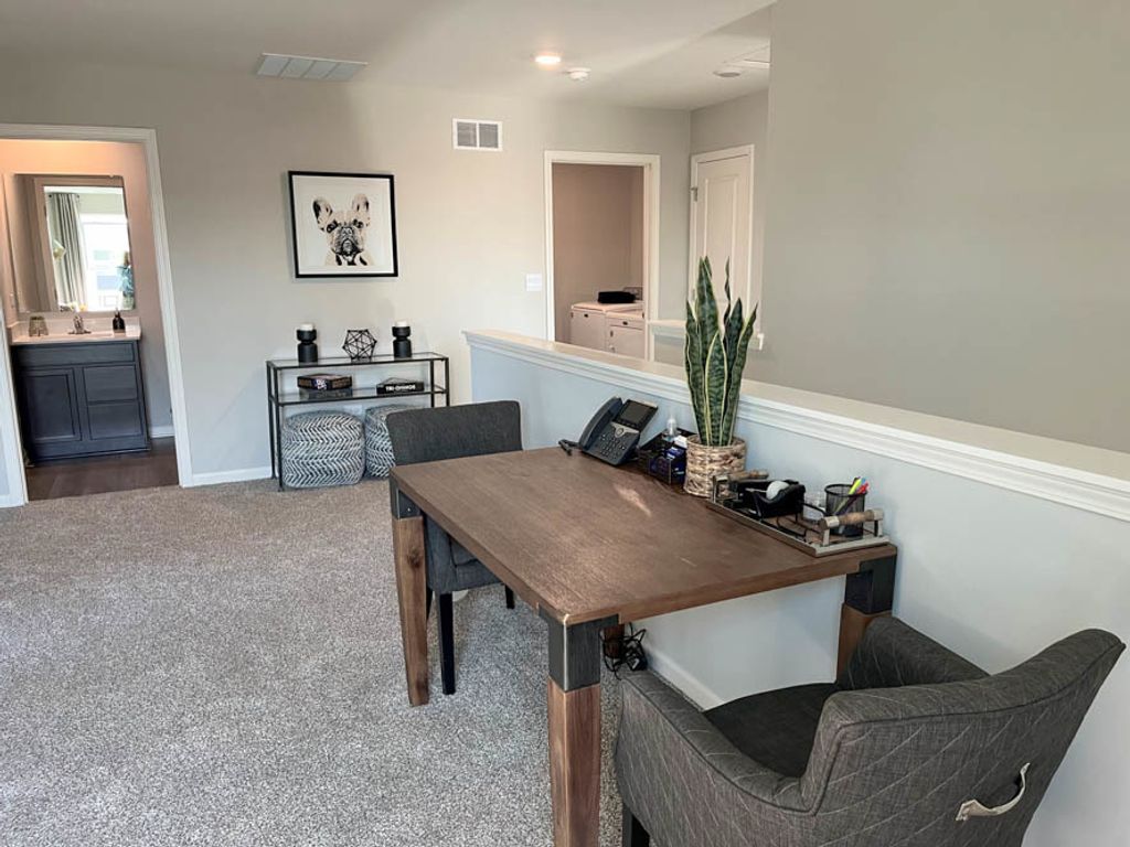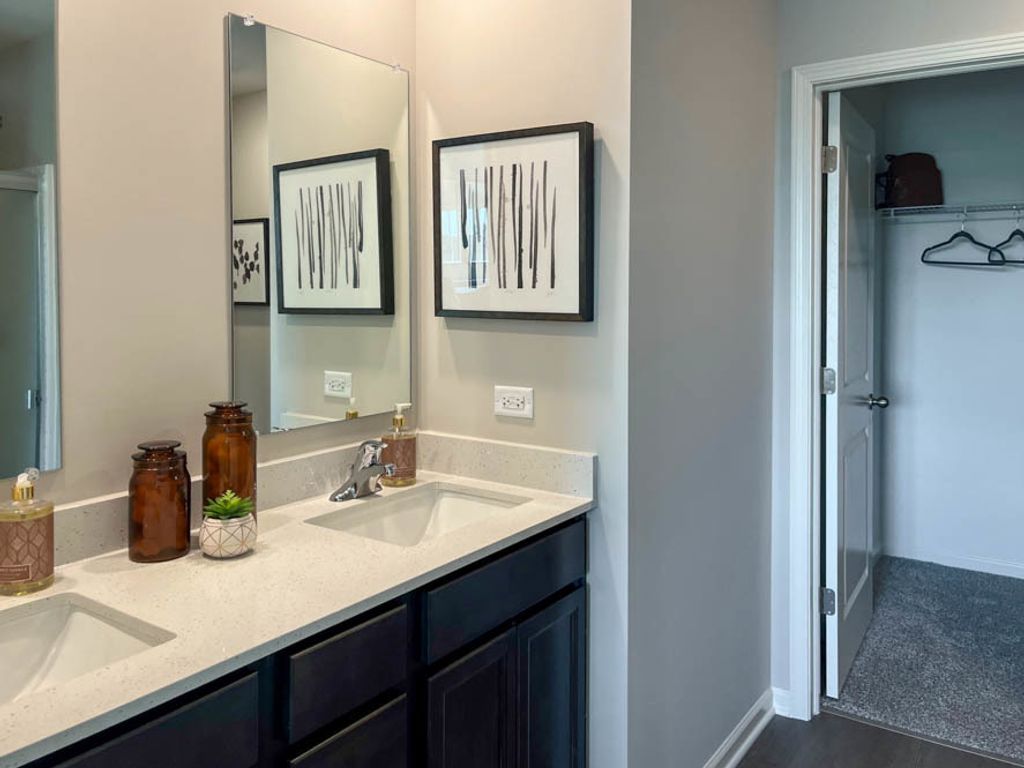 Find yourself at 3703 Stockton Drive in Joliet, Illinois, a beautiful new home in our Cedar Creek community. This home is move-in ready NOW! Homesite includes a fully sodded yard. The Sydney plan offers over 1,600 square feet of living space with 3 bedrooms, 2.5 baths, a loft and a full basement. Coming through your front door, you walk into the open concept great room and kitchen space, making it the perfect entertaining space. Your kitchen features white designer cabinetry with quartz countertops and a large island a barstool overhang and pantry. Walking upstairs, you will find your large primary bedroom with a deluxe bathroom complete with a dual quartz raised vanity and walk-in closet. Enjoy the convenience of a second floor walk-in laundry room, additional secondary bedrooms, a full second bath, a loft, and linen closet. Impressive innovative ERV furnace system and tankless water heater round out the amazing features this home has to offer! Tucked off Rt. 53, Cedar Creek is located near I-80, I-55, and the Metra train, all within a few miles. All Chicago homes include our America's Smart Home Technology, featuring a smart video doorbell, smart Honeywell thermostat, smart door lock, Deako smart light switches and more. Photos are of similar home and model home. Actual home built may vary.