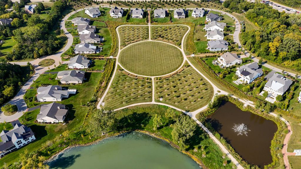 Brand new construction in the Woods Estate enclave of Westleigh Farm, ideally situated on a quiet cul-de-sac with beautiful western exposure and sunset views out your back patio, set on nearly an acre overlooking the nature preserve. This thoughtfully designed home blends timeless architecture with a modern day spacious floor plan that includes a desirable first-floor primary suite, soaring ceilings, wide-plank hardwood floors and refined details throughout. The expansive great room flows seamlessly into a sunroom, private office and chef's kitchen with custom cabinetry, luxury appliances, oversized island and walk-in pantry. Adjacent breakfast and dining areas offer flexible gathering spaces. The first-floor primary suite is a private retreat with spa-inspired bath and dual walk-in closets. A full bath, separate mudroom and laundry room are just inside your attached three-car garage. The spacious second level includes three bedrooms, two full bathrooms, convenient 2nd laundry room, loft area and a game/family room. Full basement includes an additional 2,800 sq ft and has roughed-in drywall which can be finished (inquire for more details). Residents enjoy 47 acres of preserved natural beauty, clubhouse, indoor pickleball court, and scenic walking paths - all minutes from Market Square, Metra, dining, shopping, and award-winning Lake Forest schools.