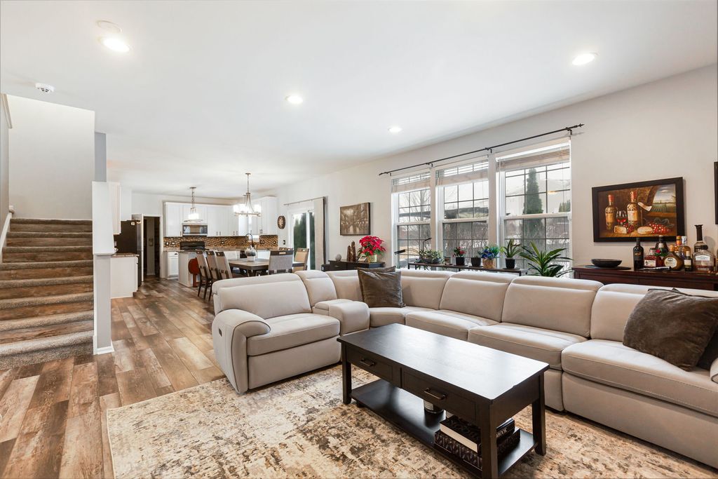 Welcome to Silver Glen! This spacious and thoughtfully designed home offering three fully finished levels. Upon entering, you're greeted by a formal dining room for gatherings and a flexible living room that can easily serve as a home office or study. The heart of the home is the open kitchen, complete with stainless steel appliances, granite countertops, a center island, and a bright breakfast area. This space flows seamlessly into the inviting family room with a cozy fireplace. The upper level showcases four generous bedrooms plus a versatile loft, ideal for a play area, study nook, or additional lounge. The expansive primary bedroom features excellent closet space and an adjacent full bath. Sliding doors open to a brick patio overlooking the partially fenced backyard. The finished basement provides exceptional additional living space, whether you're looking for a second family room, home gym, recreational area, or hobby zone. It also offers ample storage and a separate bonus room, giving you even more flexibility. With energy-saving solar panels, this home combines comfort, functionality, and efficiency. Move-in ready and beautifully maintained, it's a wonderful opportunity to enjoy space, versatility, and modern conveniences all in one place.