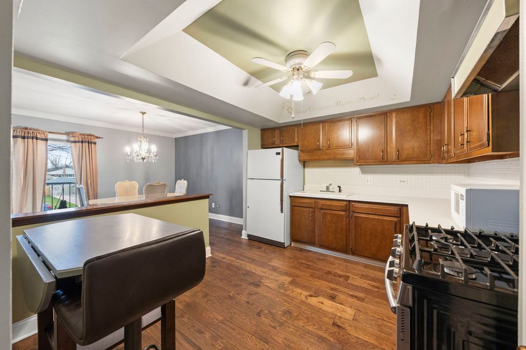 Discover this beautiful 2nd-floor condo offering generous space, modern style, and an unbeatable location. Inside, you'll be greeted with stunning hardwood flooring throughout the home. Find two large bedrooms and 1.5 bathrooms. The primary bedroom is accompanied by a 1/2 bathroom. The spacious kitchen features ample table space and opens to a separate dining room-perfect for everyday meals or entertaining. A rare find, the unit includes a large in-unit laundry and storage room, providing exceptional convenience and organization. Meticulously maintained and move-in ready, this condo also includes an assigned parking spot with plenty of easy street parking available in the neighborhood. Located within strolling distance of Worthbrook Park, scenic walking trails, a vibrant shopping plaza, and everyday conveniences like Jewel-Osco, this home blends comfort, style, and lifestyle ease. A must-see!