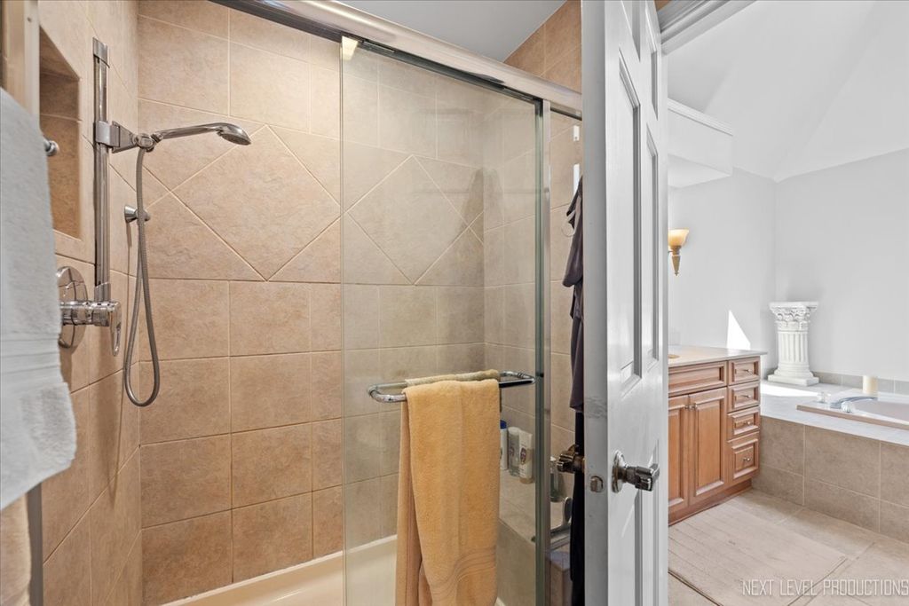 Welcome to this stunning 2-story home, perfectly situated in highly desirable River Woods! Step inside to a grand foyer with hardwood floors that flow seamlessly into the kitchen, dining room, and family room. The formal dining room sets the stage for memorable gatherings, while a private back office offers a quiet retreat with direct access to the deck. The spacious family room is filled with natural light from the bay window and skylight and is anchored by a cozy gas log fireplace-ideal for relaxing evenings. The remodeled chef's kitchen by Normandy is a true showstopper, featuring beautifully updated cabinetry, Cambria quartz countertops, a center island, and a sunlit eating area with a patio door leading to the backyard patio. Upstairs, the luxurious primary suite includes a private sitting room, his and hers walk-in closets, and a beautifully updated en-suite bath with a jetted tub and separate shower. Three additional bedrooms and a second full bath complete the upper level. The backyard is an outdoor retreat, showcasing multiple entertaining and relaxation spaces including a deck, paver patio with pergola, complementary hardscaping, and mature landscaping. Additional highlights include a 2-car garage with ample storage and a full basement waiting for your finishing touches. All this in a prime location near award-winning Naperville 203 schools, parks, playgrounds, shopping, dining, and vibrant Downtown Naperville. Don't miss your chance to make this River Woods gem your new home!