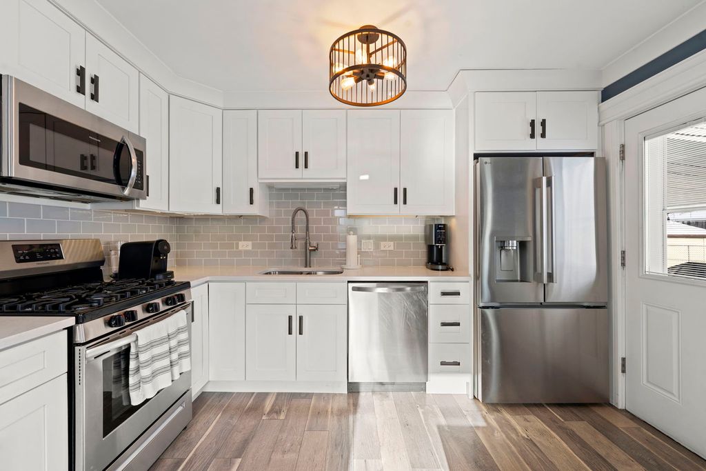 Dont miss out on this one! Completely rehabbed in 2019, this house is move-in ready! This beautifully refreshed home has everything already done for you, just unpack and enjoy. The updated kitchen features white 42" cabinets, quartz countertops, under-cabinet lighting, and newer stainless steel appliances including a brand-new 2025 refrigerator. Fresh interior paint (2025) provides a clean, modern feel throughout. High quality laminate flooring flows seamlessly through the entire home. The living room is accented with custom millwork, crown molding, and a large picture window that pours in natural sunlight. Step outside to a fully fenced backyard with a covered patio, perfect for relaxing or entertaining. Additional features include a water softener and an oversized 1.5-car garage that provides additional storage. Located in a quiet neighborhood close to shopping, dining, and easy expressway access, this home truly checks every box!