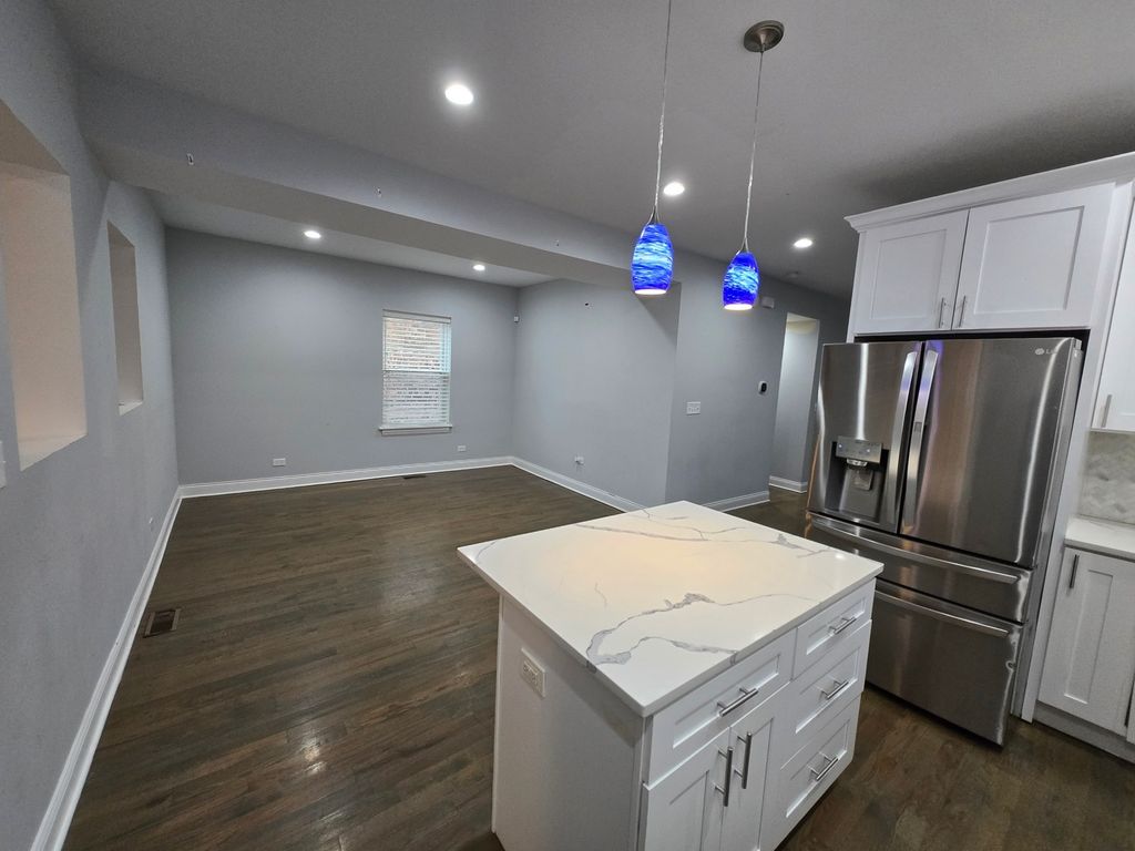 Welcome to a beautiful and very spacious 2 story Bungalow that was beautifully rehabbed in 2020 with all permits in the South Shore community. This Bungalow features 5 bedrooms with very large walk-in closets, 4 custom designed bathrooms, foyer entrance that leads to a large living room, 1st floor bedroom/den with French doors, large modern kitchen with quartz countertops with undermount sink, 42' soft close white cabinets, stainless steel dishwasher and refrigerator, stove connection for gas or electric (220 amp line), formal dining room, large walk-in pantry, rear mud room, 9ft ceilings and hardwood flooring throughout 1st level, 10ft ceiling on 2nd level with 2nd level laundry room (retro fit for 220 amp electric or gas dryer), full finished walk-out basement with full bathroom, bedroom, recreation and tandem custom barn door movie room, workout area, large laundry room, 200 amp electrical service with separate service panel for alarm and door bell, the entire house has been updated with CAT7 internet wiring for super high speed internet connection, Ecobee electronic thermostat, new garage (built 2020). Pride of ownership throughout this community. SOLD "AS-IS" CONDITION, RELOCATION SALE. Motivated Seller, schedule your showing today.