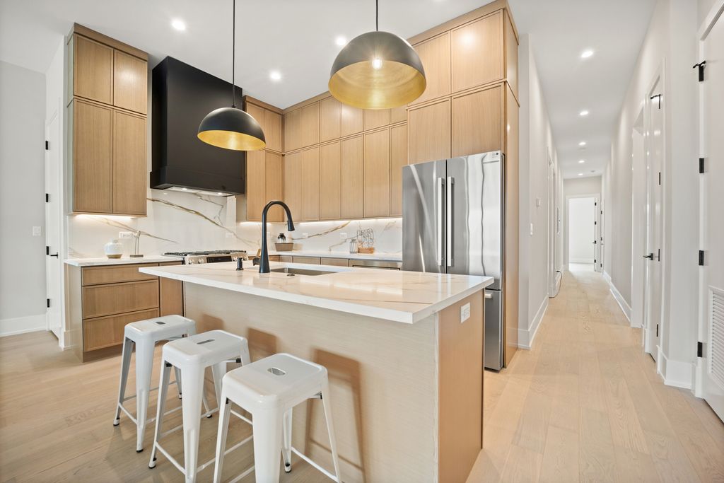 Located in Irving Park, this oversized 3-bed, 2-bath unit offers 2,000 sq. ft. of open-concept living space with 10.5 ft ceilings, 8 ft solid core doors, and hardwood floors. The spacious living room features a fireplace and sliding glass doors that lead to a large balcony with a gas line. Andersen doors and windows throughout. The chef's kitchen boasts custom cabinetry, a vented hood, quartz countertops, Bosch stainless steel appliances, and a generous island. The primary en suite includes a walk-in shower, double vanities, and plenty of closet space. Ideally situated just steps from the Brown Line, Chicago Riverwalk, and Horner Park's 57 acres of recreational space. VARIETY OF FLOOR PLANS. Delivery July / August 2026.