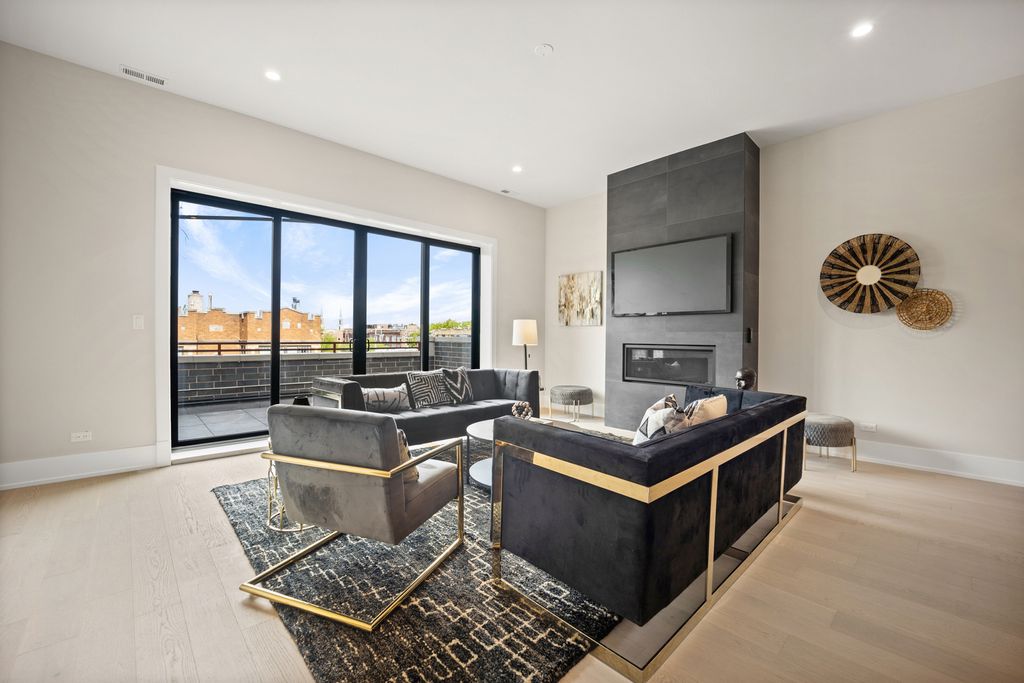 **SOLD BEFORE PRINT** Located in Irving Park, this oversized 3-bed, 2-bath unit offers 2,000 sq. ft. of open-concept living space with 10.5 ft ceilings, 8 ft solid core doors, and hardwood floors. The spacious living room features a fireplace and sliding glass doors that lead to a large balcony with a gas line. 1700 sq foot PRIVATE roof top deck with pavers, water and natural gas line. Andersen doors and windows throughout. The chef's kitchen boasts custom cabinetry, a vented hood, quartz countertops, Bosch stainless steel appliances, and a generous island. The primary en suite includes a walk-in shower, double vanities, and plenty of closet space. 1 garage parking spot included. Ideally situated just steps from the Brown Line, Chicago Riverwalk, and Horner Park's 57 acres of recreational space. VARIETY OF FLOOR PLANS. Delivery July / August 2026.