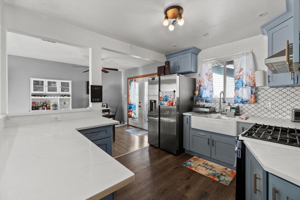 Welcome to this beautifully updated 4-bed, 2-bath home on a desirable corner lot in Burbank. Bright, inviting, and thoughtfully improved, this home offers a comfortable and functional layout across both levels. Step inside to an open main level featuring a remodeled kitchen(2021) with quartz countertops, updated cabinetry, stainless steel appliances, and a layout that connects directly to the living room and dining room. French doors off the dining area lead to the back deck and yard, creating a smooth indoor and outdoor flow. The refinished hardwood floors(2021), giving the main level a fresh and polished look. The main level includes two bedrooms, including the primary suite which now features a newly added walk-in closet. The main-floor bathroom is updated and well sized for daily use. The lower level adds valuable living space with a generous family room, two additional bedrooms including one with its own walk-in closet, a second full bathroom, and a conveniently located laundry area. The property features a two-car garage and an additional storage shed, giving you extra room for tools and seasonal items. Sitting on a corner lot, the home enjoys an expansive yard with both a deck and a patio area, creating multiple outdoor spaces for relaxing, entertaining, or enjoying warm-weather gatherings. Located near schools, parks, transportation, and local amenities, this home is positioned in a convenient and desirable Burbank location. Property being sold AS-IS
