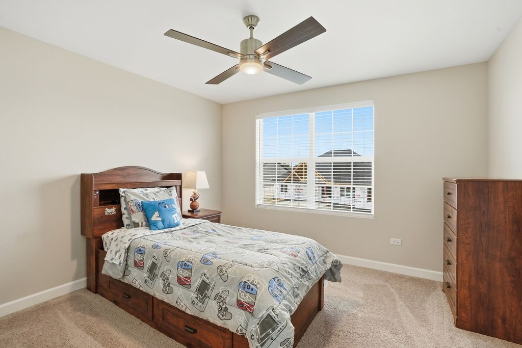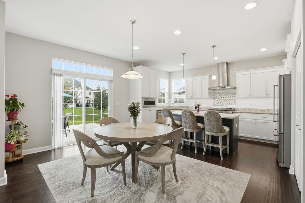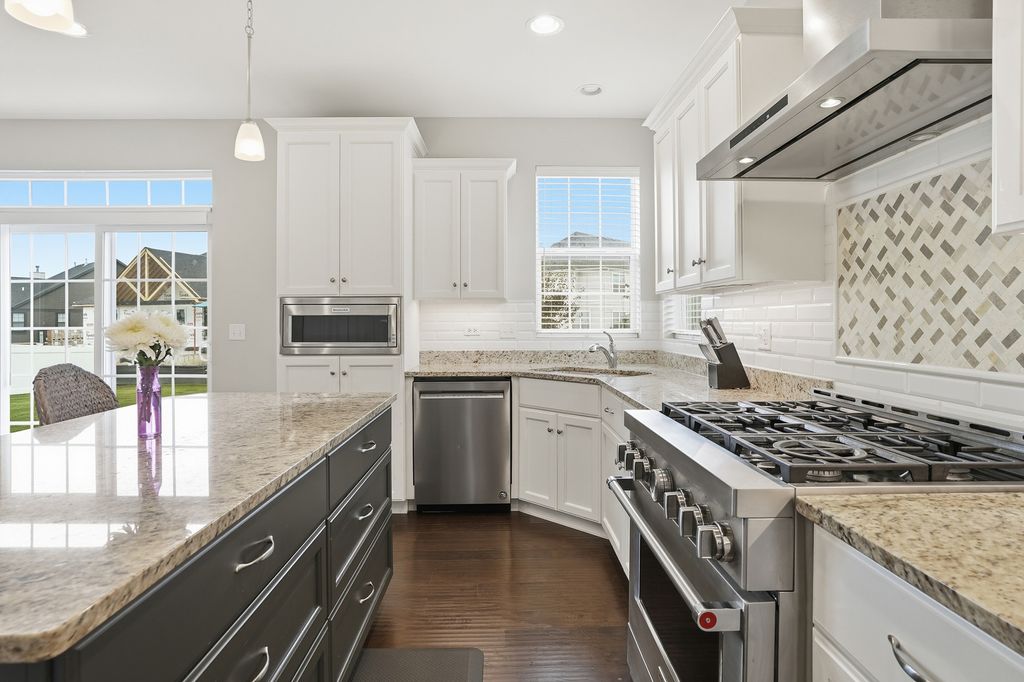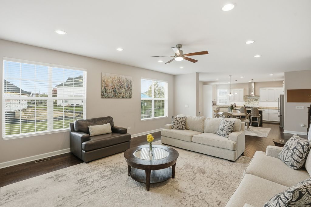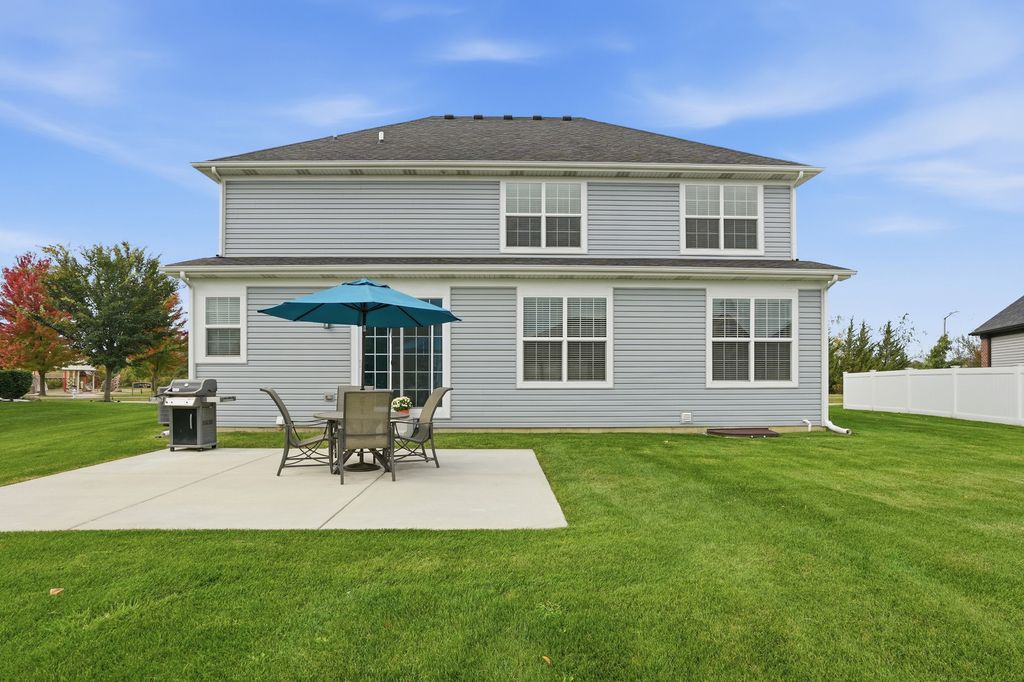 Welcome to this breathtaking, like-new residence perfectly situated on a premium lot across from a scenic park in one of the area's most sought-after country club-style communities. From the moment you arrive, this home captivates with its impressive curb appeal, sun-filled interiors, and designer finishes throughout. Step inside the grand entry to a bright and airy open floor plan that exudes elegance. The sunlit living and dining rooms showcase rich plank flooring, expansive windows, and an effortless flow ideal for both entertaining and everyday living. The gourmet kitchen is a true showstopper-featuring white cabinetry with crown molding, stainless steel appliances, an upscale range hood, granite countertops, a designer subway-tile backsplash, pantry closet, and an oversized island with breakfast bar. Enjoy morning coffee in the sunny breakfast area with a door leading to the large patio overlooking the professionally landscaped yard with irrigation system. The spacious family room invites relaxation with its cozy gas-start fireplace, abundant recessed lighting, and open-concept design. A main-level office with double-door entry provides the perfect work-from-home retreat. Elegant mudroom with built-in bench with hooks. The attached, fully drywalled garage adds everyday convenience and polished functionality. Downstairs, the newly finished lower level offers luxury and versatility-ideal for related living. This impressive space features a fifth bedroom, full bath, large recreation room with plank flooring, workout area, and generous storage, all designed with comfort and style in mind. Upstairs, discover four additional bedrooms, each with a walk-in closet. The primary suite is a private sanctuary, highlighted by a grand double-door entry, expansive walk-in closet, and a spa-inspired luxury bath boasting a raised double vanity, relaxing soaker tub, separate glass-enclosed shower, and private water closet. The hall bath also features a raised double vanity and refined finishes. Convenient 2nd floor laundry room with custom cabinetry. With five bedrooms, three-and-a-half baths, and impeccable attention to detail, this home offers a perfect blend of sophistication, comfort, and functionality. Enjoy the tranquility of suburban living paired with resort-style amenities-including a full aquatic center with two pools, thrilling waterslides, splash zones, and more. The community is just moments from downtown Plainfield, where you can explore quaint shops, local dining, seasonal festivals, and the charm of Settlers' Park with its movies, concerts, ponds, paths, and riverfront kayak launches. Easy access to shopping, highways, and public transportation completes the picture of effortless luxury living. This is more than a home-it's a lifestyle of elegance, leisure, and comfort waiting for you.