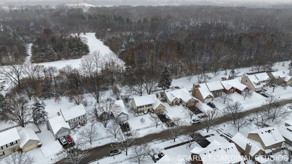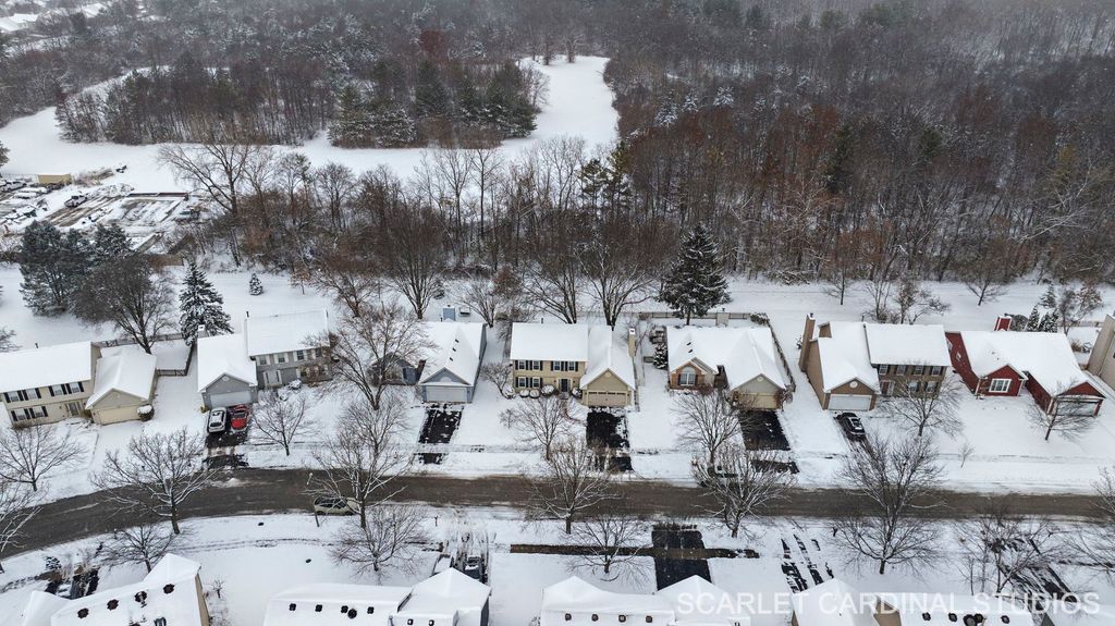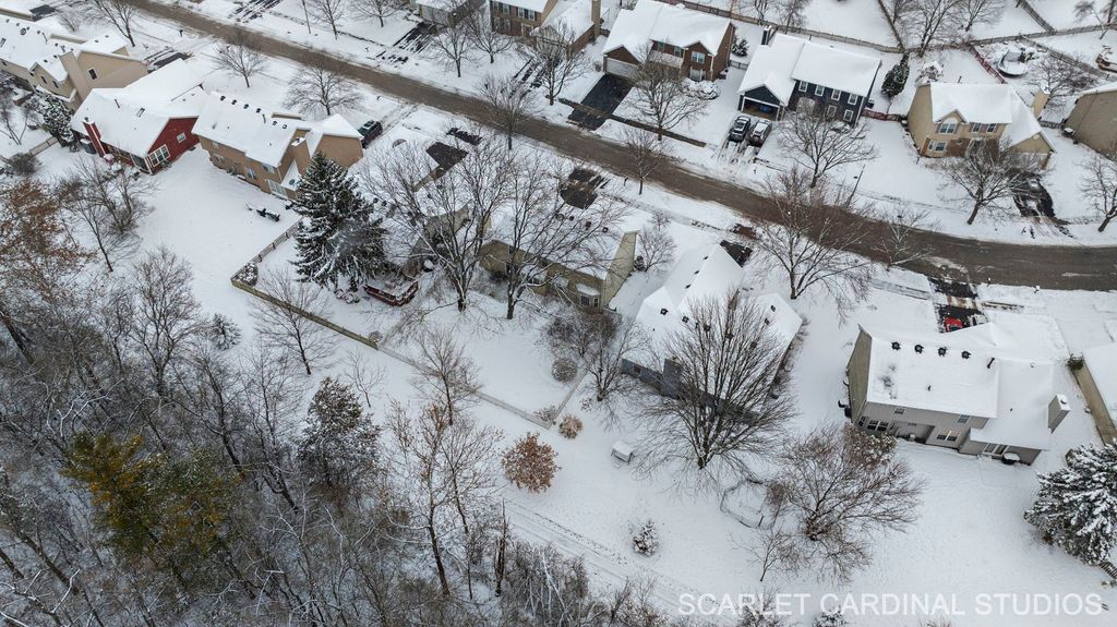 Welcome to this exceptional home that boasts the dreamiest private back yard views of the Oakhurst Forest Preserve. Inside you will find stunning hardwood flooring gracing the entire 1st floor. Custom touches such as thick baseboards and crown molding, and gorgeous upgraded lighting add so much charm and character throughout. Warm up next to a roaring fire from the marble surrounded fireplace, while enjoying peaceful views of all that nature has to offer right out of the large glass patio doors. The built-in bookshelves are perfect for displaying your treasures and tucking away games and blankets. You won't want to leave the custom banquette seating (that opens up for additional storage space) in the kitchen making it the coziest eating space, all perfectly positioned under a gorgeous light fixture. The fully updated kitchen is flooded with natural light from the large over the sink window, highlighting the warm granite counters and stone backsplash. Ample white cabinets, planning desk, stainless steel appliances and a pantry with built in Shelf Genie organizational system. The peninsula can make for perfect additional counter seating. Enter into the dining room with a huge bay window and a wide open view of the private backyard. The dining room flows right into the living room for such ease of entertaining your largest gatherings. You'll notice that the first floor powder room has been nicely updated. Upstairs you'll fall in love with the primary suite that has soaring vaulted ceilings, hardwood floors, a large walk-in closet and updated vaulted bathroom. The additional bedrooms boast new carpeting, neutral fresh paint and hardwood flooring in the hallway that ties all rooms together. The guest bathroom is white and bright, with modern updates such as new tile floor, new granite top vanity, new toilet. Downstairs, the finished basement is incredible - freshly painted and carpeted and it offers built-in cabinets and 2 separate rooms for all of your entertaining and storage needs. After entertaining and relaxing in your professionally designed and landscaped yard, including a second flagstone patio set perfectly under the shade of mature trees. Just step out of the backyard and you'll experiences miles of walking and biking paths that run along side of the over 394 acres of the Oakhurst Forest Preserve. Cut through the woods or walk around along McCoy to access Lake Patterson and a massive sled hill, just in time for the winter season! Fish and canoe in the summertime! Also within walking distance is Steck Elementary school with a private pedestrian bridge for safe crossing. Waubonsie lake, park and pavilion are a hop, skip and a jump away. In the warmer months you can enjoy all of the amenities Oakhurst has to offer such as basketball courts, soccer fields, sand volleyball, tennis and pickleball and you can also join the pool/clubhouse if desired! This home is set apart with its upgraded lighting and custom touches throughout, beautiful brick look entry sidewalk, custom patio with mature landscaping all within a fenced yard.. and no neighbors behind! Just move in and fall in love with your new home and neighborhood! Don't worry about updates, they've been done! 2025 - New carpet in 3 bedrooms and basement. Fresh paint in many rooms, laundry room and basement. 2024 - New stainless refrigerator and New patio door. 2020 - All New windows! Newer hot water heater. After 2010 - Approx roof age.
