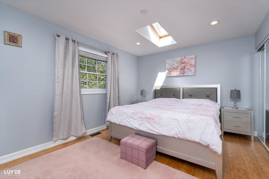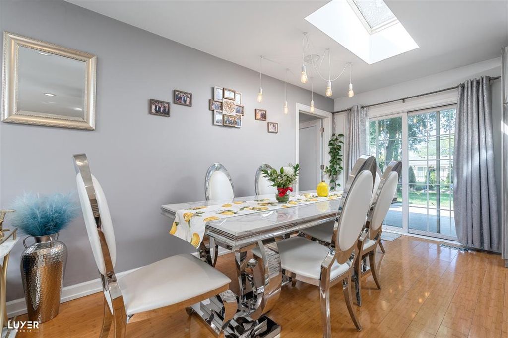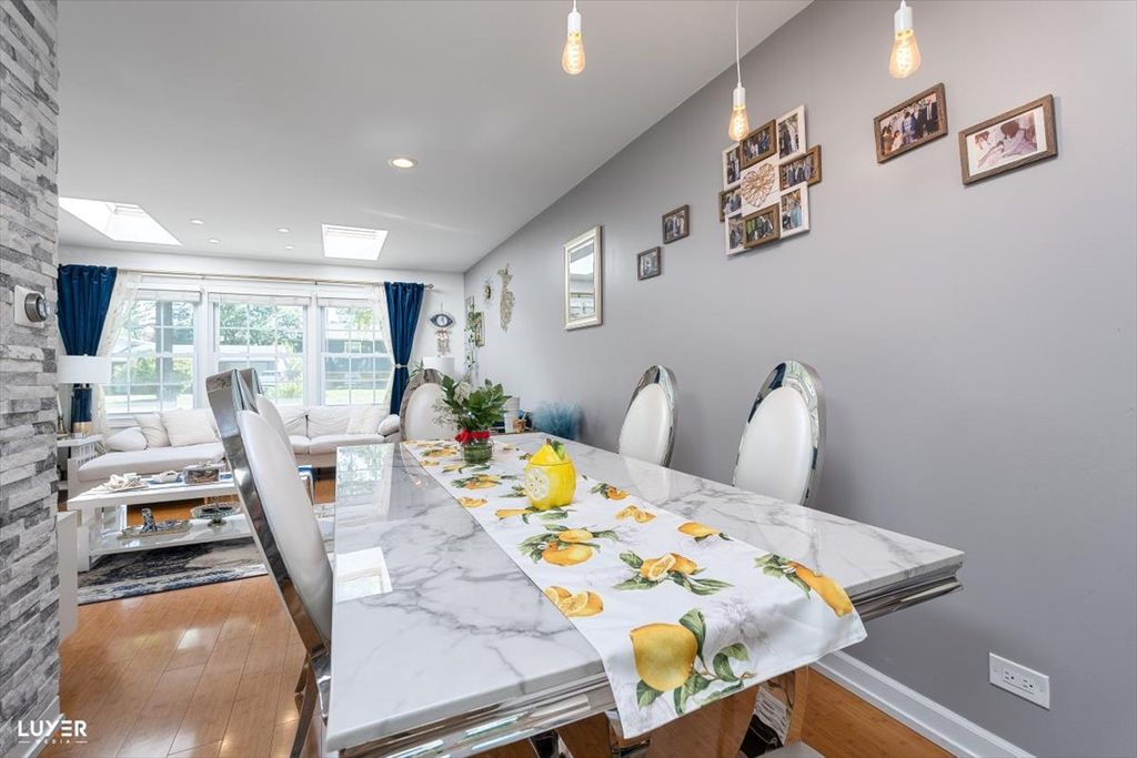 **Schaumburg school district** low taxes, modern finishes and thoughtful updates throughout, this move-in-ready gem offers both style and functionality. As you enter, you're greeted by a stunning accent wall and an open-concept layout with rich bamboo flooring on the main level, creating a warm and welcoming atmosphere. The sun-drenched living room features a large window and skylight, filling the space with natural light. The kitchen is a showstopper-completely remodeled with ample cabinetry, sleek quartz countertops, a deep sink, a large window overlooking the backyard, a skylight. The adjacent dining area boasts another skylight and a newer sliding glass door that opens to the backyard, making indoor-outdoor entertaining a breeze. A functional mudroom connects the garage to the home and includes direct access to the backyard-a perfect drop zone for busy households. Downstairs, the spacious lower level offers a versatile room that can serve as a fourth bedroom or family room, complete with a beautifully renovated full bath-ideal for guests or gatherings. Upstairs, you'll find three generously sized bedrooms, all with hardwood floors and skylights. The primary bedroom features an entire wall of closet space, while the updated main bathroom includes double sinks and modern finishes. The home also offers a large laundry room equipped with a tankless water heater, newer furnace and AC, laundry tub, refrigerator, and three spacious storage closets. Additional highlights include recessed lighting with dimmers throughout, a welcoming foyer with a double coat closet, a new sump pump, and extensive updates such as newer siding, gutters, and a roof with 7 skylights that brighten every corner of the house. Enjoy the outdoors in your private backyard oasis, featuring a patio, garden shed, vegetable garden, new fencing, and freshly planted trees for added privacy. This home truly has it all-don't miss your chance to make it yours!