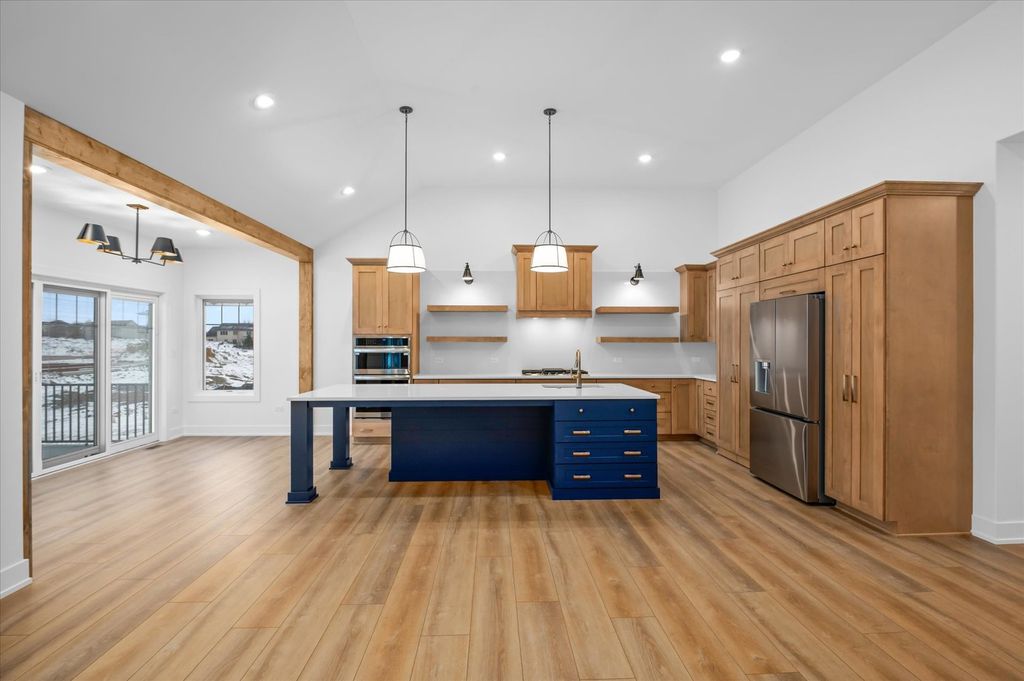 This sprawling three bedroom under construction ranch house is ready for you to customize! There is still time to make your selections! Open one story floor plan provides plenty of living space - dining room/office with barn doors that open to the kitchen, large family room with beamed ceiling and limestone fireplace, kitchen with huge island and separate eating area and three bedrooms. Kitchen has been updated to a chef's dream - custom cabinetry, island with plenty of prep space and seating and stainless steel appliances. Private master suite with oversized walk in shower, separate toilet closet and dual vanity. Two additional bedrooms (or use one as a home office, den or yoga space) - one en suite with full bathroom and large closet. Large basement with rough in bathroom that could be completed to add additional living space, bedroom and/or exercise room. Laundry room conveniently located off of the garage with built in lockers/bench and extra closet storage. Three car garage. Builder financing is available. Pricing is subject to change based on current cost estimates. Photos of previously built home in Deerpath Trails. Move in by next summer - JUNE 2026 delivery. There is time to make your selections and the builder standards exceed others options.