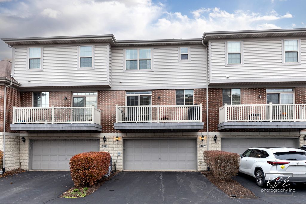 Beautifully appointed former builder's model in desirable Mayfair subdivision. Commuters' delight! @2.5 miles from Rt. 59 train station and so close to top schools, shopping and restaurants! Rare to find Hathaway model with 3 bedrooms and 3 FULL en suite bathrooms plus a powder room. The welcoming main floor is spacious and bright with 9 ft. ceilings & cherry hardwood floors throughout. The living room and adjoining dining room share a cozy gas fireplace and both have plenty of space for entertaining. The spacious kitchen features completely refreshed white 42" cabinetry with crown molding, Frigidaire stainless steel appliances, quartz countertops, pantry, and sliding doors that lead to a spacious balcony. Luxury Owners' suite has volume ceilings and bathroom with whirlpool tub, separate shower, and dual vanities. Second Bedroom features ample closet space and abundant natural lighting. Enjoy the convenience of 2nd floor laundry! Washer+dryer are included. Lower level features a private 3rd bedroom/den/office space with large windows and attached bath. Freshly painted. Loads of storage too! Welcome Home!!!