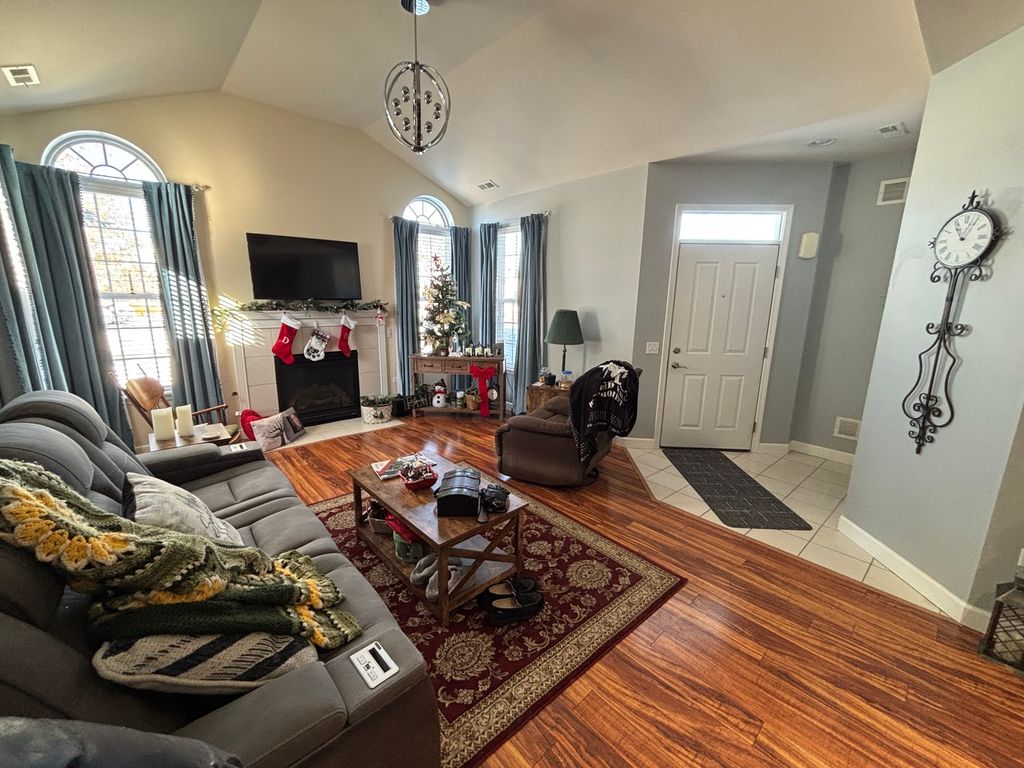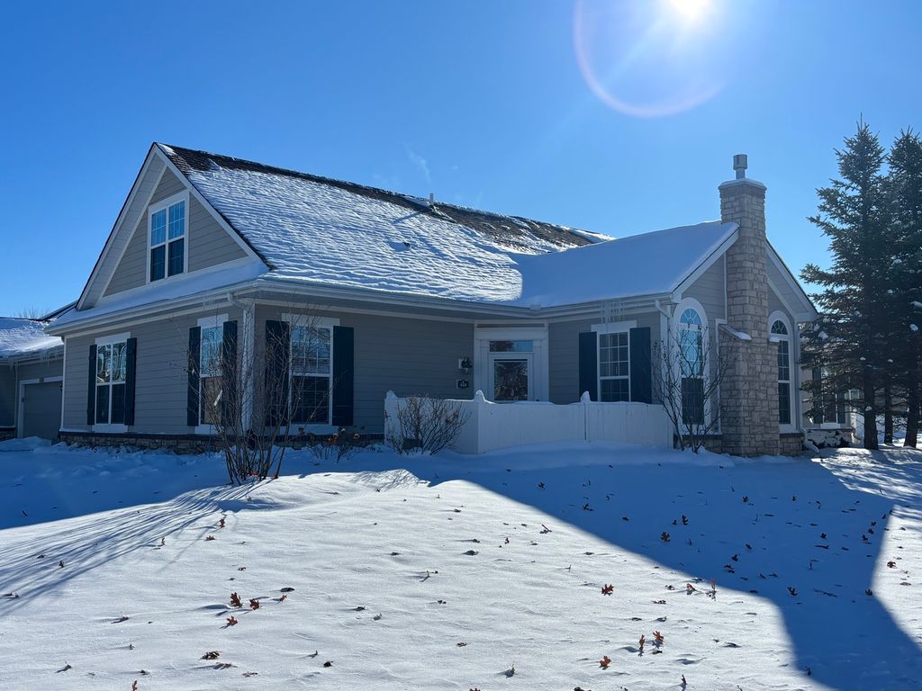 Welcome home to this beautiful updated rach style property featuring a rare dual primary suite layout. One on the main level and another upstairs, offering ideal flexibility for guests or multigenerational living. This 3 bedroom 2.5 bath home offers maintenance free living with an open concept design, valuted ceilings, a cozy fireplace, and adundant natural light. The renovated kitchen includes modern cabinetry, stainless steel appliances, including a new refrigerator, quartzite countertops, a coffee/breakfast bar, and a spacious pantry. Both primary suites include full baths and walk in closets, and the third bedroom is generously sized. Additional highlights include a dedicated laundry room, two car garage with attic access, and a charming partially fencced patio. Located steps from the club house, you'll enjoy resort style ameneties, fitness center, lounge library, event space, billards, and a heated outdoor pool. The association handles landscaping and snow removal for truly effortless living. Schedule your tour today!