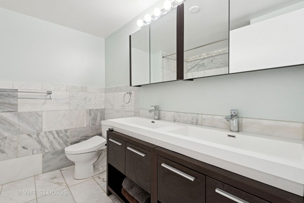 Exquisite Corner Penthouse in the Historic Prairie District. This stunning penthouse with deeded garage parking included in the price boasts breathtaking floor-to-ceiling windows, flooding the space with natural light and spectacular views. The beautifully updated kitchen features sleek, modern Italian-style white cabinetry, elegant Quartz countertops, and an expansive waterfall island with abundant storage, all complemented by top-of-the-line stainless steel appliances. Throughout the unit, rich hardwood floors create a seamless flow, while elegant window treatments add a touch of sophistication. The 10-foot ceilings and wide-reaching windows invite sunlight to pour in, accentuating the spacious, open feel of the home. The updated marble bathrooms include a luxurious primary suite with a dual vanity. The unit also offers the convenience of a new in-unit washer and dryer, along with ample closet and storage space. Both bedrooms are fully enclosed with superb natural light. Enjoy a wealth of amenities, including a gym, bicycle room, and doorman/reception services. Take in unparalleled views of the Chicago skyline from your private balcony, offering stunning south- and west-facing vistas, with the lakefront just steps away. Located within walking distance of the lakefront trail, Soldier Field, Museum Campus, and multiple train stations (Red & Green Lines), this penthouse offers the perfect blend of luxury and location.