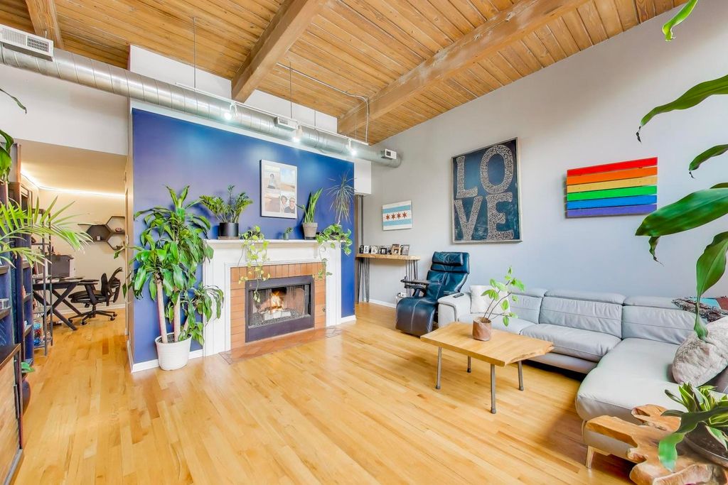 Truly a one-of-a-kind, townhome-style condo that blends authentic Chicago character with modern updates-featuring exposed brick and heavy timber, soaring 14-foot ceilings, fireplaces throughout, and two private outdoor spaces that give you real, usable outdoor living. The recently renovated kitchen delivers a fresh, updated feel, giving the classic loft the modern touch. Turn this two bedroom into a true three bedroom on the bottom floor with a simple door addition. Unlike most condos, this home offers the privacy you actually want-no one above you and no one below you. The result is a rare property type that lives like a home, feels like a loft, and stands out in a sea of cookie-cutter condos.