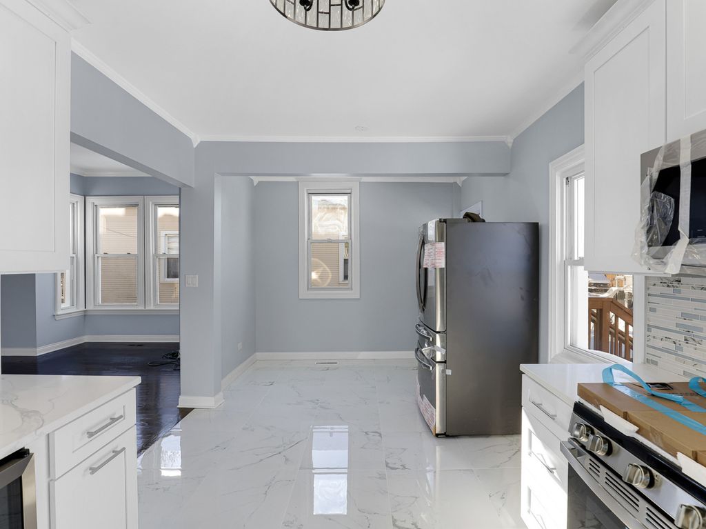 Beautiful two-story single-family home with a rare side drive in Maywood, offering outstanding curb appeal and a full list of modern upgrades. This home blends quality, comfort, and style-an excellent fit for buyers searching for a move-in-ready property near Chicago and a strong example of premium marketing for future sellers. The main level welcomes you with a bright living and dining area that opens into a **brand-new designer kitchen** featuring quartz countertops, stainless steel appliances, a dishwasher, and a wine-cooler refrigerator. Every detail is thoughtfully chosen to provide elegance, function, and durability. Throughout the entire home, **beautiful hardwood floors unify the space with their warm tone, clean finish, and natural shine**. They're easy to maintain, complement any decor style, and offer long-lasting durability-an ideal upgrade for the next homeowner. The second floor includes three comfortable bedrooms, a nursery, and a full bathroom, providing flexibility for families, guests, or work-from-home needs. The partially finished basement extends your living space, perfect for a recreation room, home office, gym, or additional storage. This property features significant new improvements: **new electrical, new plumbing, new windows, new doors, a new roof, and new central air**, providing peace of mind for years ahead. The exterior is equally impressive with a **brand-new concrete driveway** that accommodates **up to four cars**-a valuable convenience not often found in the area. The **extra-large backyard patio** is ideal for family gatherings, celebrations, summer grilling, or creating your own outdoor retreat. Located near parks, schools, shopping, public transportation, and key commuter routes to Chicago.
