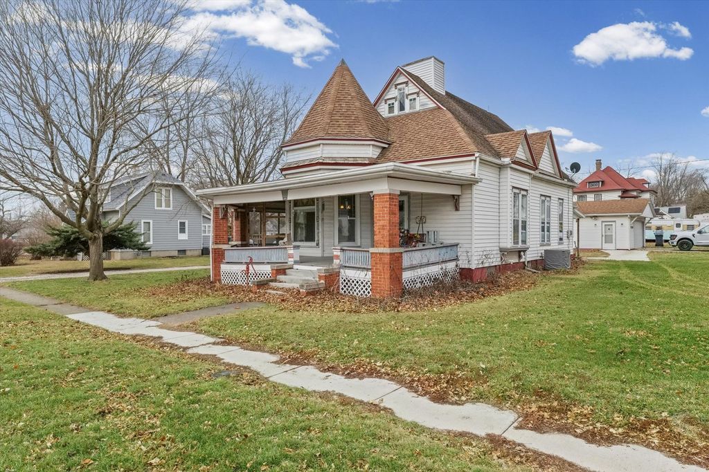 Welcome home to this charming 3-bedroom ranch situated on a desirable corner lot. This home offers character, comfort, and exciting opportunities to expand. Step inside and appreciate the beautifully preserved original woodwork and stunning stained-glass doors that add timeless elegance throughout the home. A welcoming wraparound front porch leads into a cozy screened-in porch, perfect for morning coffee or relaxing evenings. This home features classic built-ins and a fireplace that creates an inviting focal point for gatherings. The unfinished attic presents excellent potential for additional living space, allowing you to customize and grow within the home. Outside, the oversized garage is ideal for hobbyists, storage, or workshop needs. Refinished hardwood floors add a fresh, polished look. Don't miss your opportunity to call this charming home yours!