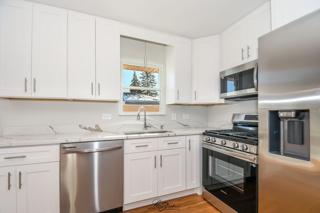 Newly remodeled and beautifully updated, this stunning 3-bedroom, 1-bathroom home offers modern comfort and style throughout. The spacious living area features striking bay windows that fill the room with natural light, complemented by a gas-lit fireplace that also supports real wood burning for added ambiance. The home includes a blend of hardwood and high-quality laminate flooring, along with a fully updated kitchen showcasing 42" cabinets, elegant quartz countertops, and brand-new stainless steel appliances. The bathroom has been upgraded with a luxurious whirlpool bathtub and matching quartz surfaces for a spa-like experience. Modern light fixtures, new doors and trim, and a full suite of mechanical upgrades-including a new water heater, AC, furnace, washer, and dryer-provide peace of mind and long-term efficiency. A heated 2-car garage adds year-round convenience. Outside, enjoy a charming patio perfect for entertaining or relaxing, plus low-maintenance landscaping with rubber mulch, decorative rock, and fresh greenery. This home is completely move-in ready-nothing left to do but enjoy.