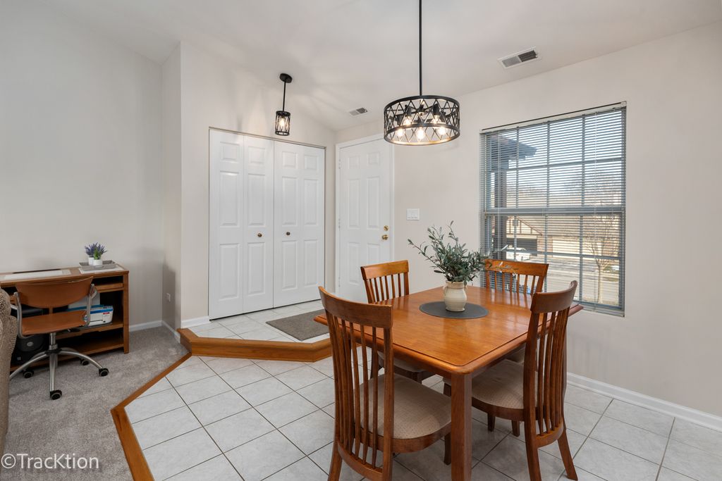 Beautifully Updated 1 Bedroom Condo with Vaulted Ceilings, Central Air & Attached Garage! Step inside this freshly updated second-floor condo and you'll immediately notice the bright, open living space. Just off the foyer, the spacious living room, truly the highlight of the home! Features soaring vaulted ceilings, a brand-new ceiling fan, fresh paint, and new carpeting. Sliding glass doors lead to a private balcony, perfect for enjoying the outdoors and sunsets. The dining area showcases a new chandelier and flows into the kitchen, which features GE stainless steel appliances, a new light fixture, and updated cabinet hardware, giving the space a clean, refreshed look. The bedroom offers new carpeting, a new ceiling fan, and fresh paint. The full bathroom includes an updated tile surround and light fixture. A brand-new washer and dryer add everyday convenience. Additional improvements include freshly painted ceilings, walls, trim, and doors throughout the entire unit. The condo also features central air conditioning, providing year-round comfort. A back stairway leads to your attached garage, which includes extra storage space and has also been freshly painted. One garage parking space is included. This is a fantastic opportunity to own a well-maintained, thoughtfully updated unit at a great price. Move right in and enjoy maintenance-free living! Live here and make it a wonderful life!