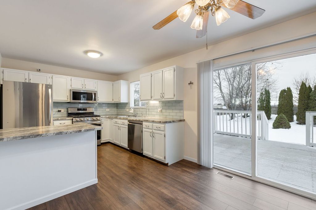 Discover this well maintained 3 bedrooms up and 1 bedroom/office in lower level, 3.5 bath home offering over 1,600 square feet of comfortable living space on a beautiful half acre+ lot. Located on a quiet cul-de-sac, this property delivers privacy, space, and a highly desirable setting for anyone looking for a move in ready home. Inside, you'll appreciate the new flooring throughout, a bright and functional layout, and plenty of room for everyday living or entertaining. The main level opens to a spacious 3 seasons porch, perfect for relaxing, hosting guests, or enjoying morning coffee. The partially finished basement adds even more value, featuring a 3/4 bath, an additional room ideal for entertaining, and a bedroom/office-perfect for guests, remote work, or flexible living space. Outside, the fully fenced yard provides room to play, garden, or unwind, and the convenient storage shed offers extra space for tools and outdoor equipment. With over half an acre, this property gives you the outdoor space buyers are searching for. This home checks all the boxes: large lot, culdesac location, updated flooring, 3seasons porch, partially finished basement, extra living space, fenced yard, and a shed-all in a well cared for property ready for its next owner. Perfect for buyers looking for a spacious home with modern updates and a private, oversized lot.