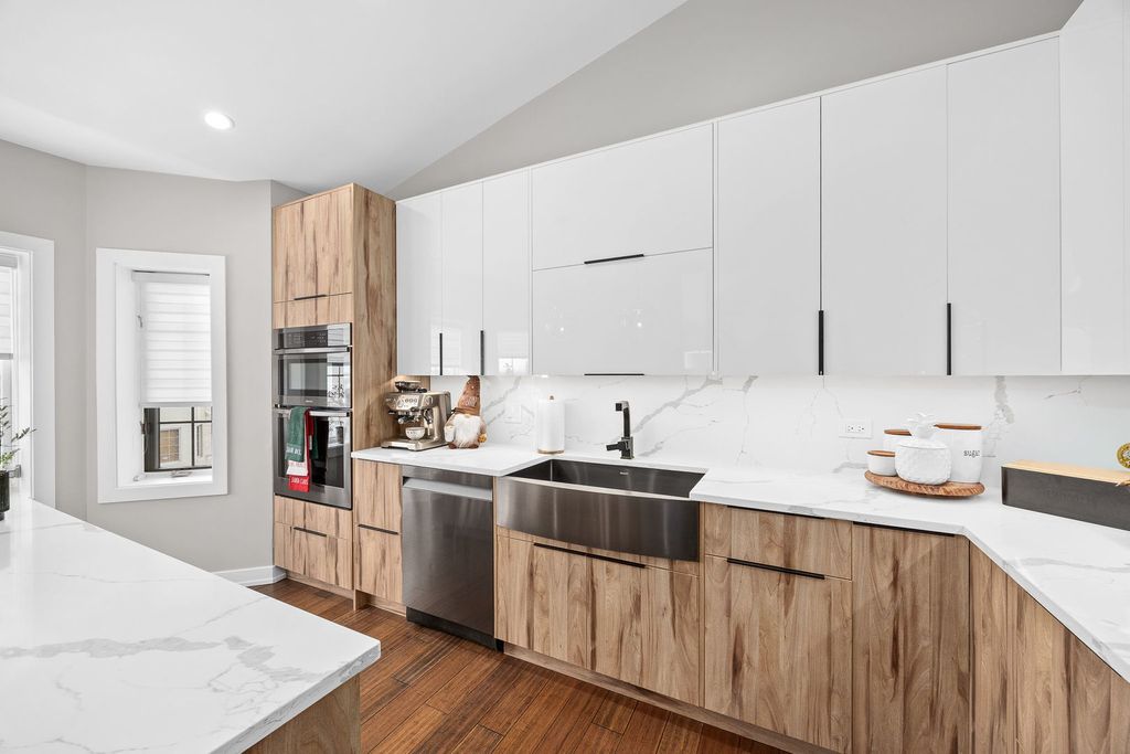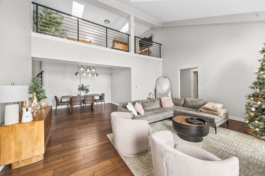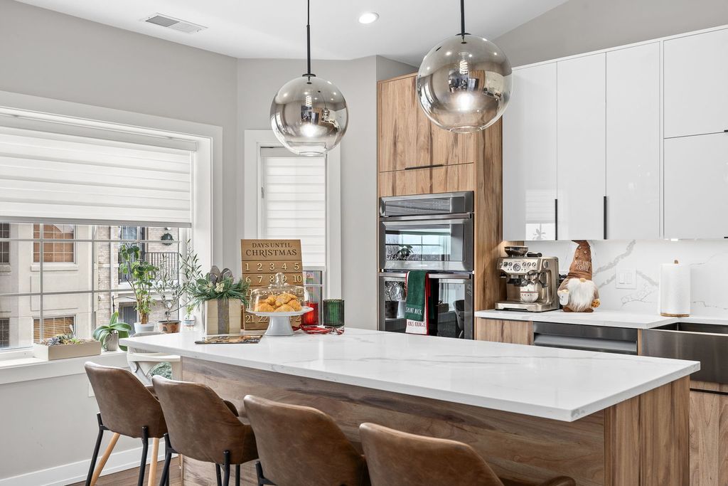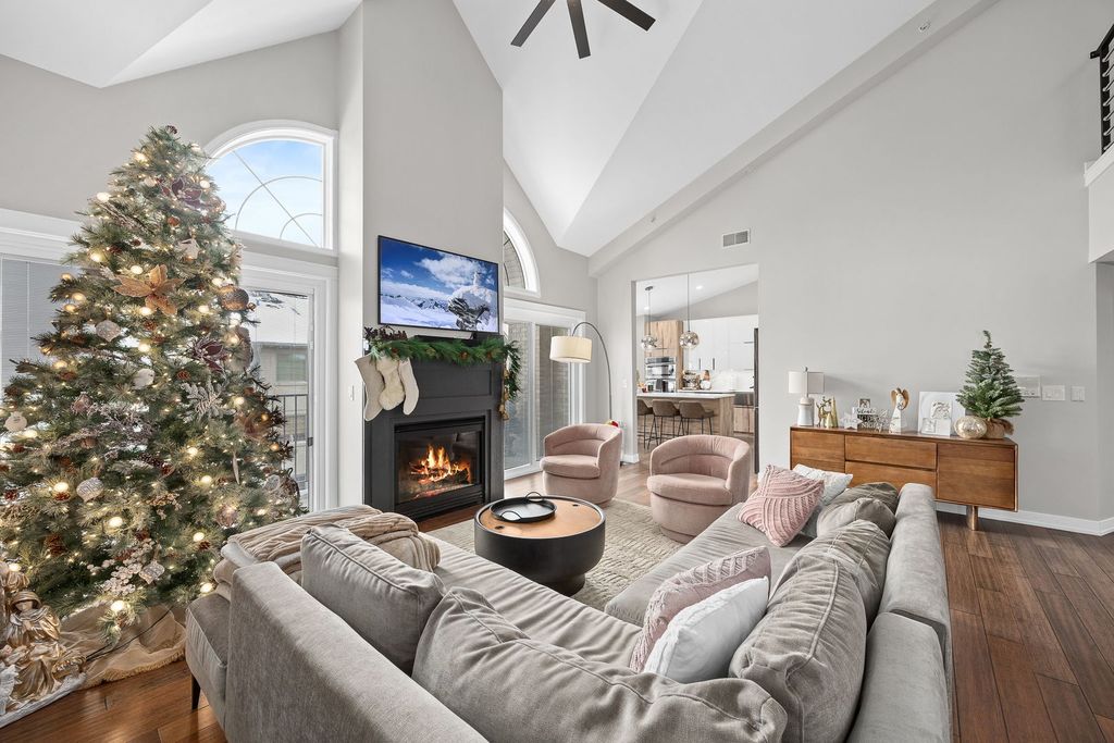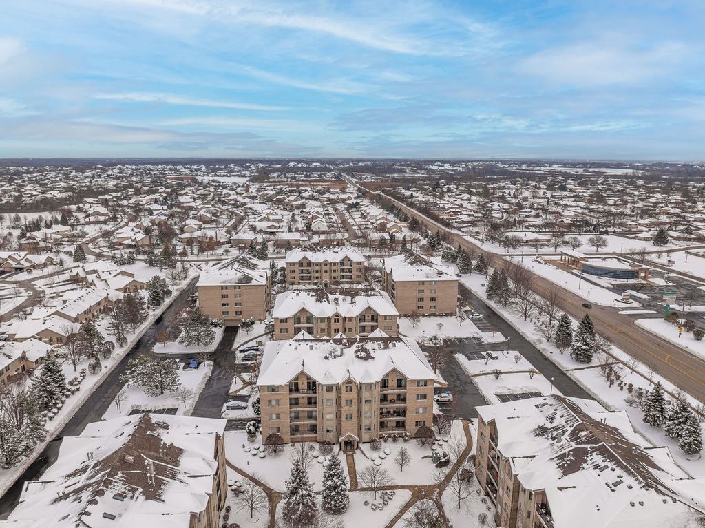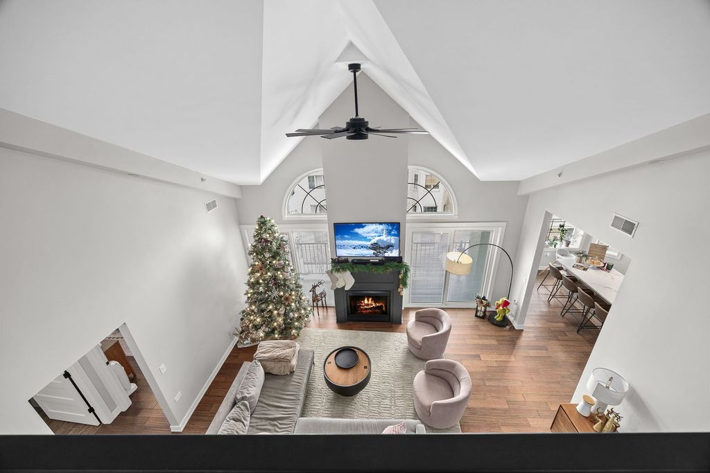 This penthouse impresses from the moment you step inside with its open-concept layout, soaring vaulted ceilings, and an exceptionally spacious kitchen that truly serves as the heart of the home. Fully updated and located in a highly desirable, well-maintained building with elevator access and a heated underground garage that includes two extra storage areas. Featuring 2 generous bedrooms, 2 custom-remodeled bathrooms, and a large loft ideal for a 3rd bedroom, office, or second family room. Engineered bamboo flooring, updated railing, and modern finishes create an inviting and airy feel throughout. The designer kitchen showcases sleek modern European-style cabinetry with excellent storage, quartz countertops and full-height quartz backsplash, stainless steel appliances, and a large island with additional cabinets underneath. The bright family room centers around a cozy fireplace and opens to a private balcony with brand-new sliding doors. The oversized primary suite features a custom walk-in closet and a stylish bathroom with a spacious vanity and contemporary shower. The second bedroom offers great closet space and convenient access to a beautifully updated full bathroom with a tub. A large in-unit laundry and utility room ensures added convenience and extra storage. Enjoy professionally maintained grounds with a charming gazebo and a prime location close to shopping, dining, Orland Park and Homer Glen amenities, schools, and Metra. Move-in ready and a pleasure to show!