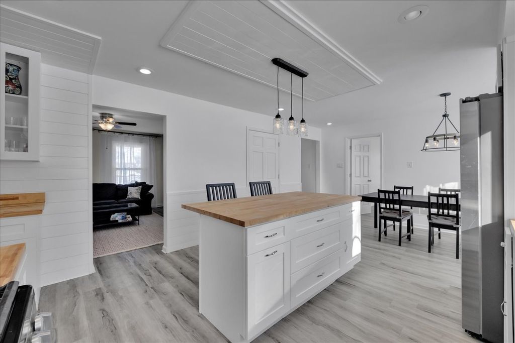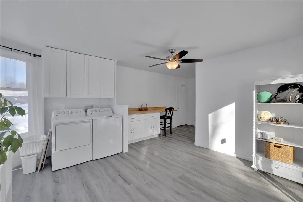Feel like you're on vacation in your own home. This quiet retreat with 4 Bedrooms and 2.5 bathrooms is located on a large yard surrounded by mature trees in a great neighborhood. This updated and stylish home has everything your family needs -- lots of space, endless storage and gathering spaces to make life-long memories. Fresh paint, new vinyl plank flooring, carpeting throughout and coordinated lighting gives the home a cohesive feeling. All four bedrooms have ceiling fans. All four bathrooms have been updated. Six walk-in closets. The kitchen is the heart of the home. White mission style cabinets, shiplap, large island, butler's pantry and a walk-in pantry, plus an eat-in dining area. The family room is connected to the kitchen and just down the hall is the powder room and the convenience of first floor laundry in a spacious back hall complete with additional storage, a desk, a walk-in family coat closet, and plenty of space to house everything kids need but you don't want in the kitchen. There's an additional room with a fireplace that currently serves as dining/living room but this bright, sunny room could be anything your family dreams up - a teenage hangout, office space, one-room schoolhouse, or a playroom. The three bedrooms upstairs have been updated each have a walk-in closet with built-in organizers. The master bedroom is a private oasis that spans the depth of the house with three walk-in closets, his and her sinks, and a custom vanity. The fourth bedroom is on the first floor. The full basement has a large rec room, ample storage and is "full bath ready." The basement has fresh carpeting in the rec room, stairs and hallway to the bathroom with a shower, new ceramic tile floor, vanity and freshly painted. Hook-ups for the sink and toilet will not be completed prior to the sale. The large workshop/storage room could be converted to a study or another bedroom. The refrigerator and shelving in the basement stay. The heated two-car garage has a new door. Both the chest freezer and refrigerator in the garage stay as well as the shelving. Hosting gatherings is a cinch in this welcoming home and the large deck off the back hall is handy for grilling and gathering where you can enjoy watching the wildlife or stargaze while relaxing in the spacious backyard. The two-story shed holds everything to free up your garage to give you plenty of room for your cars and the kids' bikes. The house is situated on a quiet street and is only two blocks from the path to Hinckley's elementary school. Garfield Park is two blocks away and Pioneer Park is close by, next to the school. Dairy Joy and the rest of downtown Hinckley and all of its conveniences is a short golf cart ride away. Mechanicals - AC (2022) Furnace (2017) Two new sump pumps with battery back-up and Wi-Fi notification (2023) Permaseal (2023) Tankless Water Heater - unknown - Downspout in ground water drainage system (2023) sump pump discharge extension (2023) Roof - unknown Garage Door (2024) As-is - The following items haven't been replaced and are being conveyed as-is: Doors, windows and siding Shed and deck Furnace and heater in the garage Please note: The house is priced with the condition of these items taken into consideration. Included Items - The following items are included in the price of the house: - All attached mirrors stay - All three stools stay - All window treatments stay - All three refrigerators stay - Chest freezer in the garage stays - Shelving in garage and basement stay