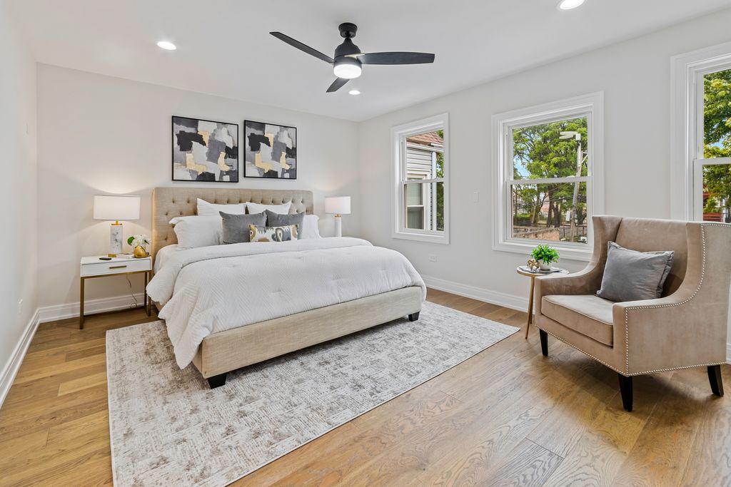 STUNNING NEWLY REHABBED SINGLE FAMILY HOME 1 BLOCK FROM 606 TRAIL Completely rebuilt 4 bed | 3.5 bath home on an oversized 25 x 177 ft extra long Chicago lot. No detail overlooked in this top-to-bottom renovation that blends vintage charm w/high-end modern finishes: - Brand-new white oak floors, painted white trim & doors throughout - Custom hand-built oak and steel stair railings throughout - Gourmet kitchen w/ 42"Shaker cabinets, quartz counters, full backsplash, and pro-grade stainless appliances (you choose) - 9 1/2 ft. Custom island - Luxurious primary suite with 2 huge closets + spa bath (dual vanities, oversized shower, dual spray) - Full finished lower level offering family room, 1 extra bedroom, 3rd full bath, huge laundry room, door to backyard w/mudroom - Extended 2-car garage w/extra parking space on alley + extra-long fenced yard & patio perfect for entertaining - Steps to the 606, Palmer Square, and the best of Logan Square dining & nightlife - Quiet one-way street, easy parking & Blue Line access - This one truly has it all!